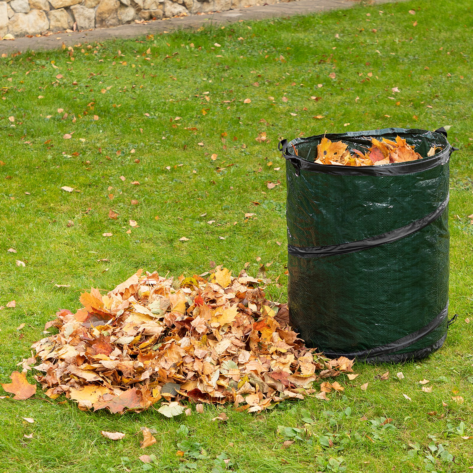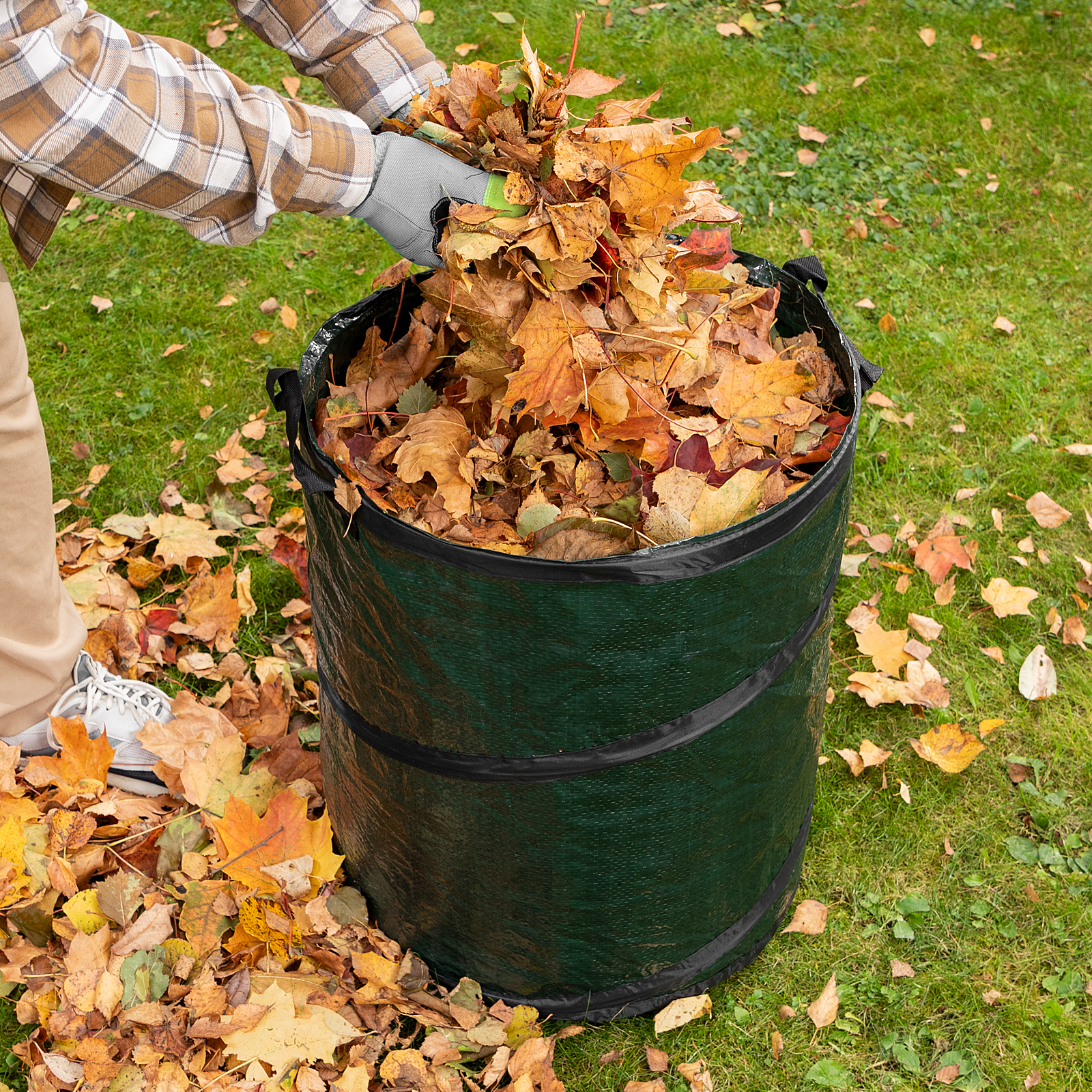 Складной садовый контейнер с ручками Palisad 64495 вместимостью 95 л используется для уборки опавших листьев, срезанных веток и другого садового мусора.