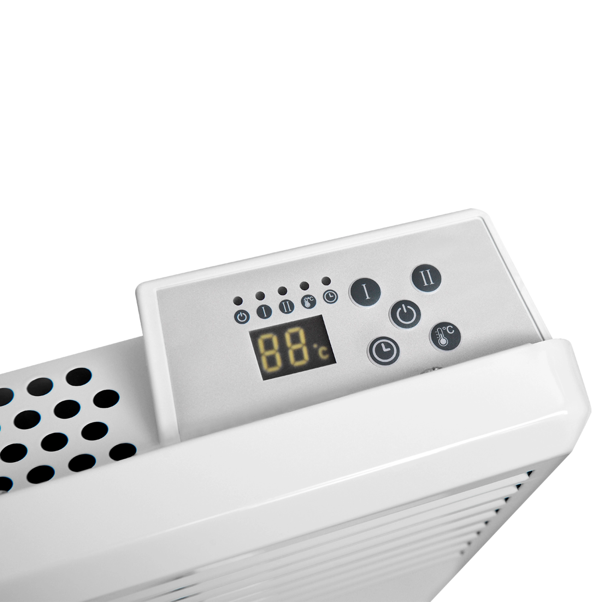 В зависимости от потребностей конвектор можно использовать как напольный или как настенный обогреватель. Регулируемый термостат автоматически поддерживает заданную температуру. Электронное управление с LED-дисплеем обеспечивают комфорт в настройке конвектора. Таймер можно поставить на время нагрева от 1 до 24 часов, по истечении которых устройство автоматически отключится.
