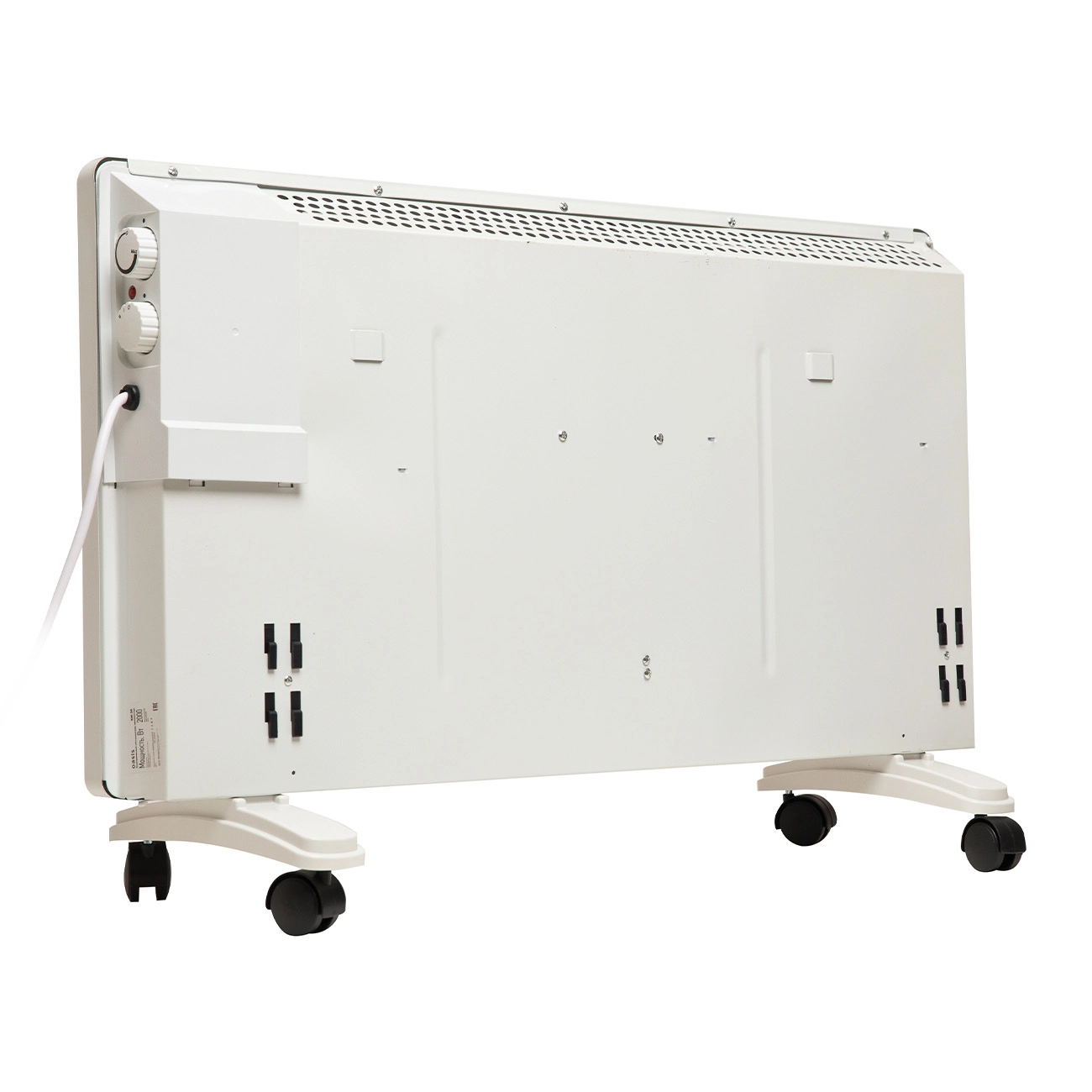 В зависимости от потребностей конвектор можно использовать как напольный или как настенный обогреватель. Регулируемый термостат автоматически поддерживает заданную температуру.