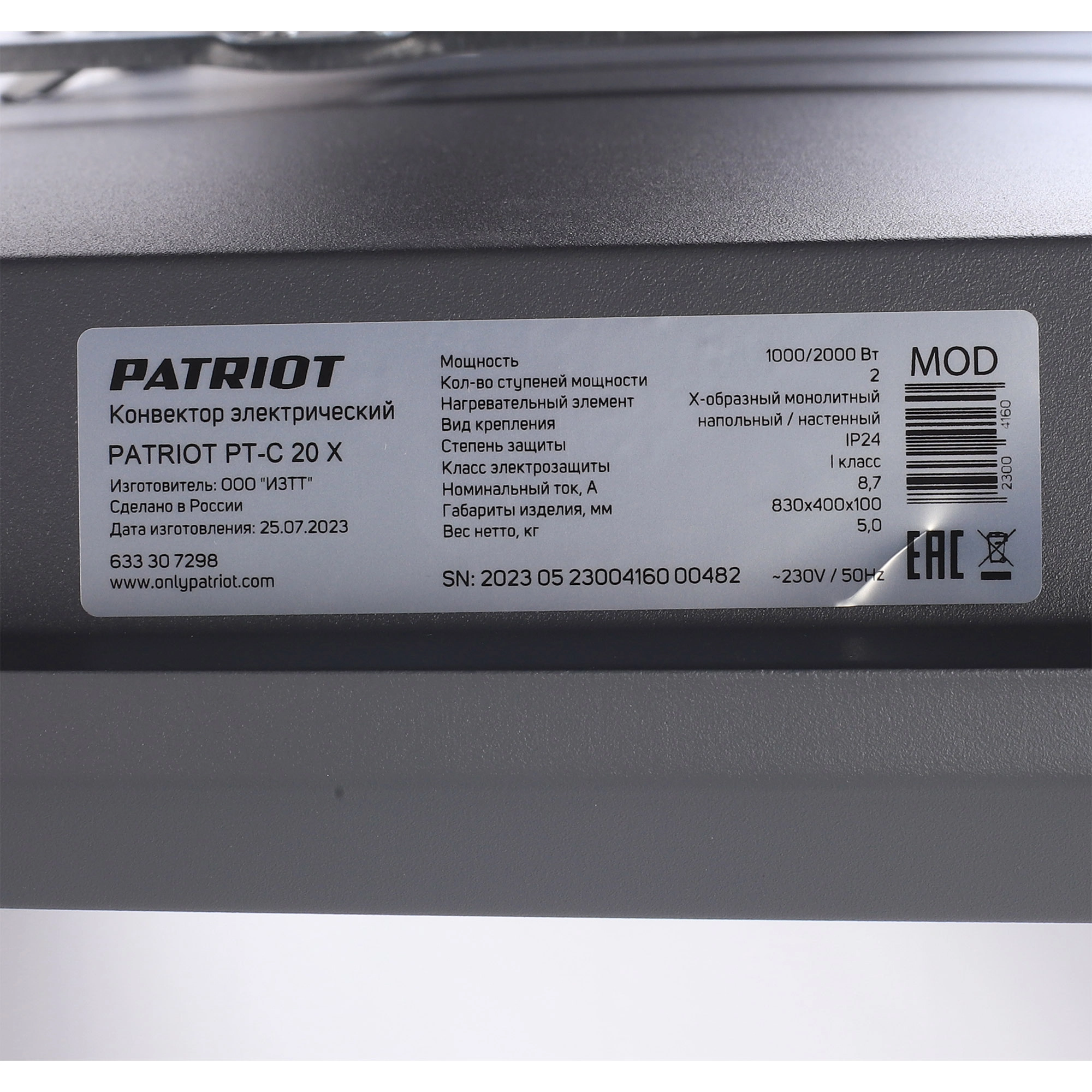 ПроизводителиКонвектор электрический PTC 20 X (2,0 кВт 30 м2 220В IP20 пол/стена) PATRIOT / IMPERIAL