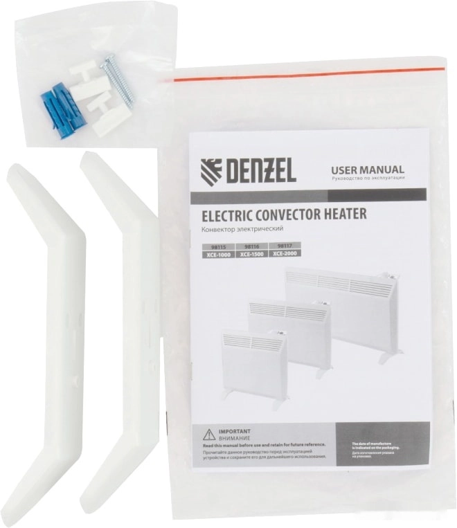 ПроизводителиКонвектор электрический XCE-1500, 230 В, 1500 Вт, белый, сушилка, колеса, Х-элемент Denzel