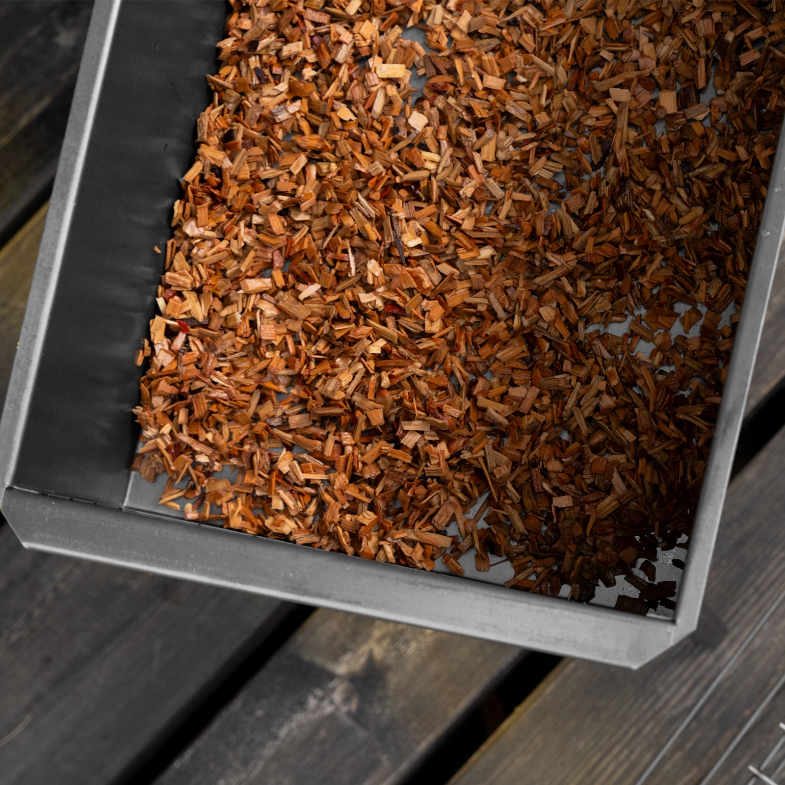 Высокие вкусовые качества приготовленной пищи — поддон препятствует попаданию жира на щепу, что исключает возникновение неприятного запаха и искажение вкуса еды.