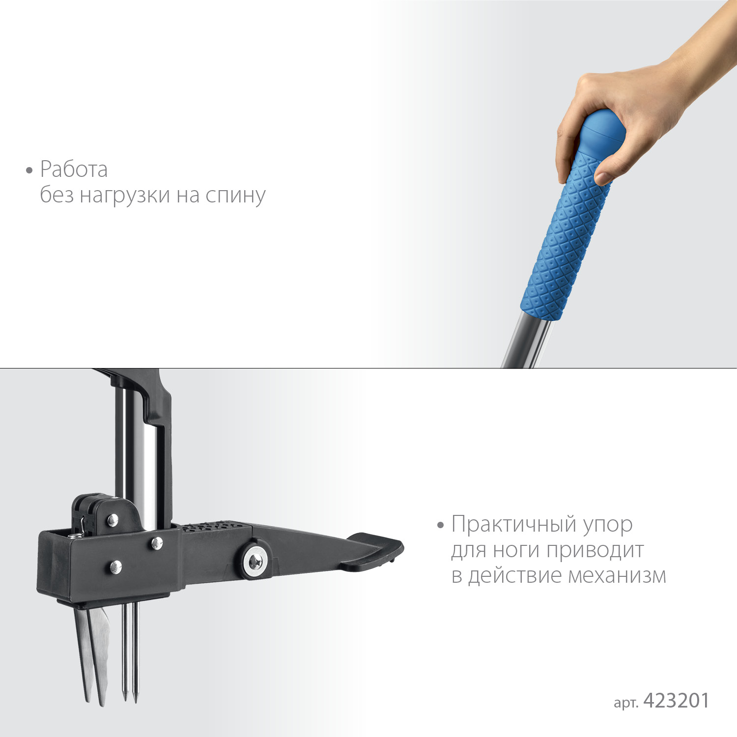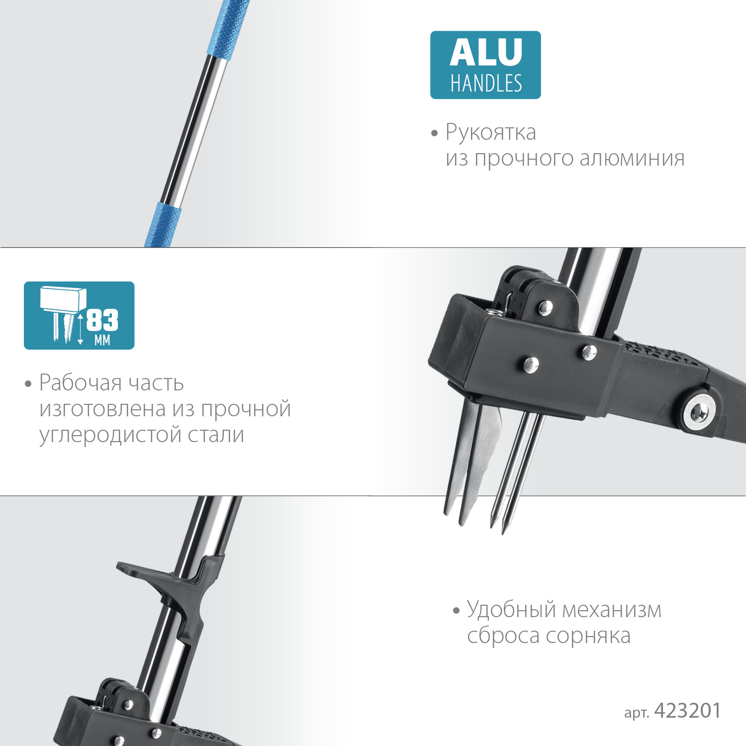 - Встроенный механизм высвобождения инструмента от сорняков