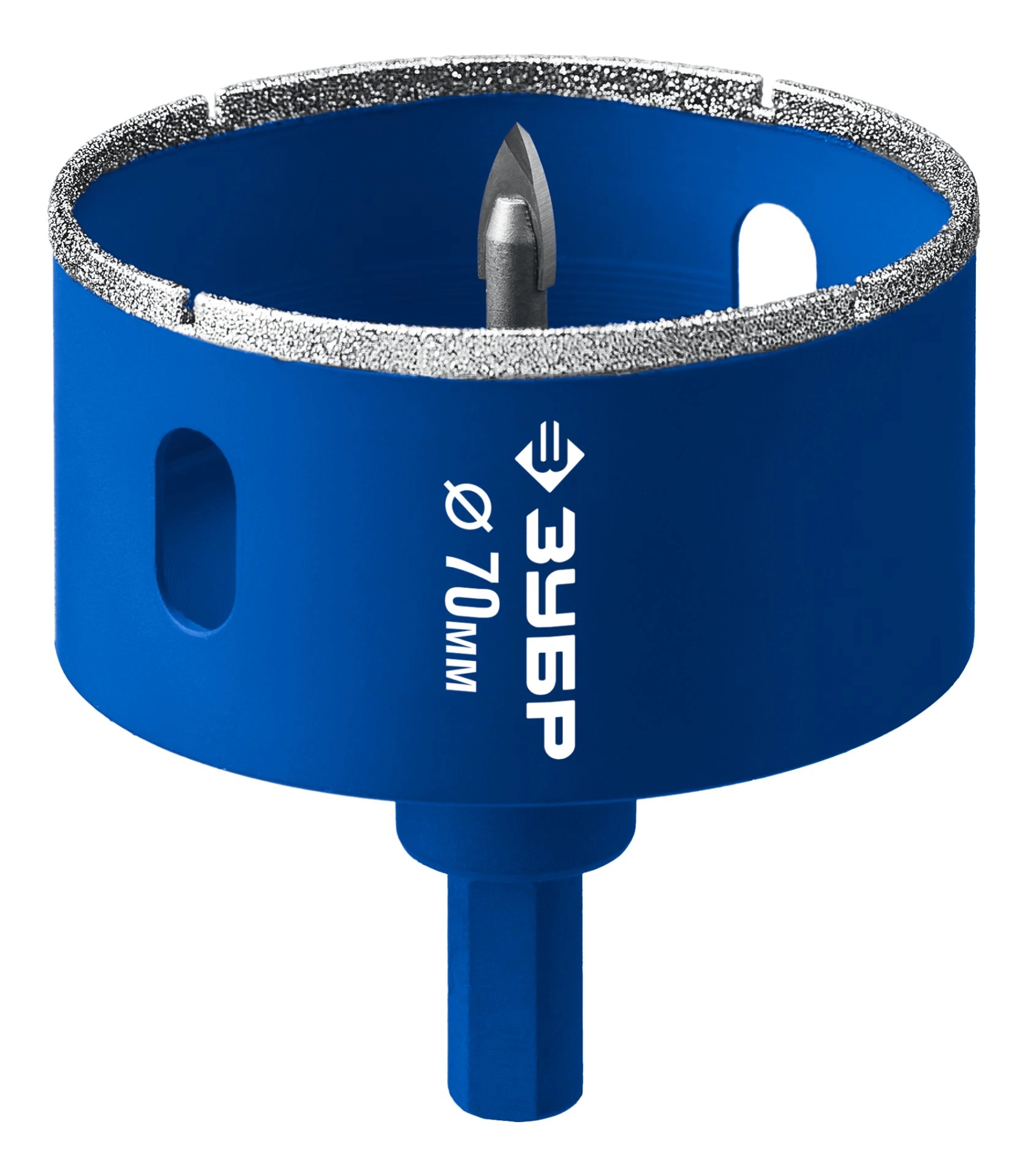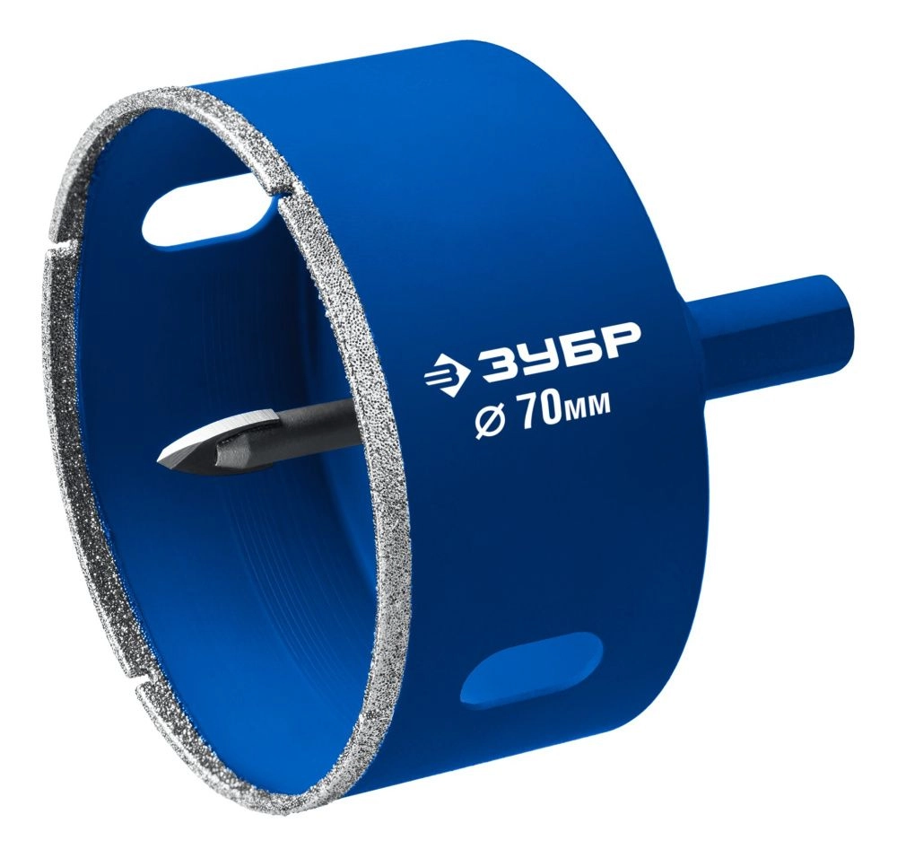 ПроизводителиКоронка алмазная 70мм, с центр.сверлом, зерно Р60, керам., кафель, стекло "ПРОФИ" (29850-70) ЗУБР