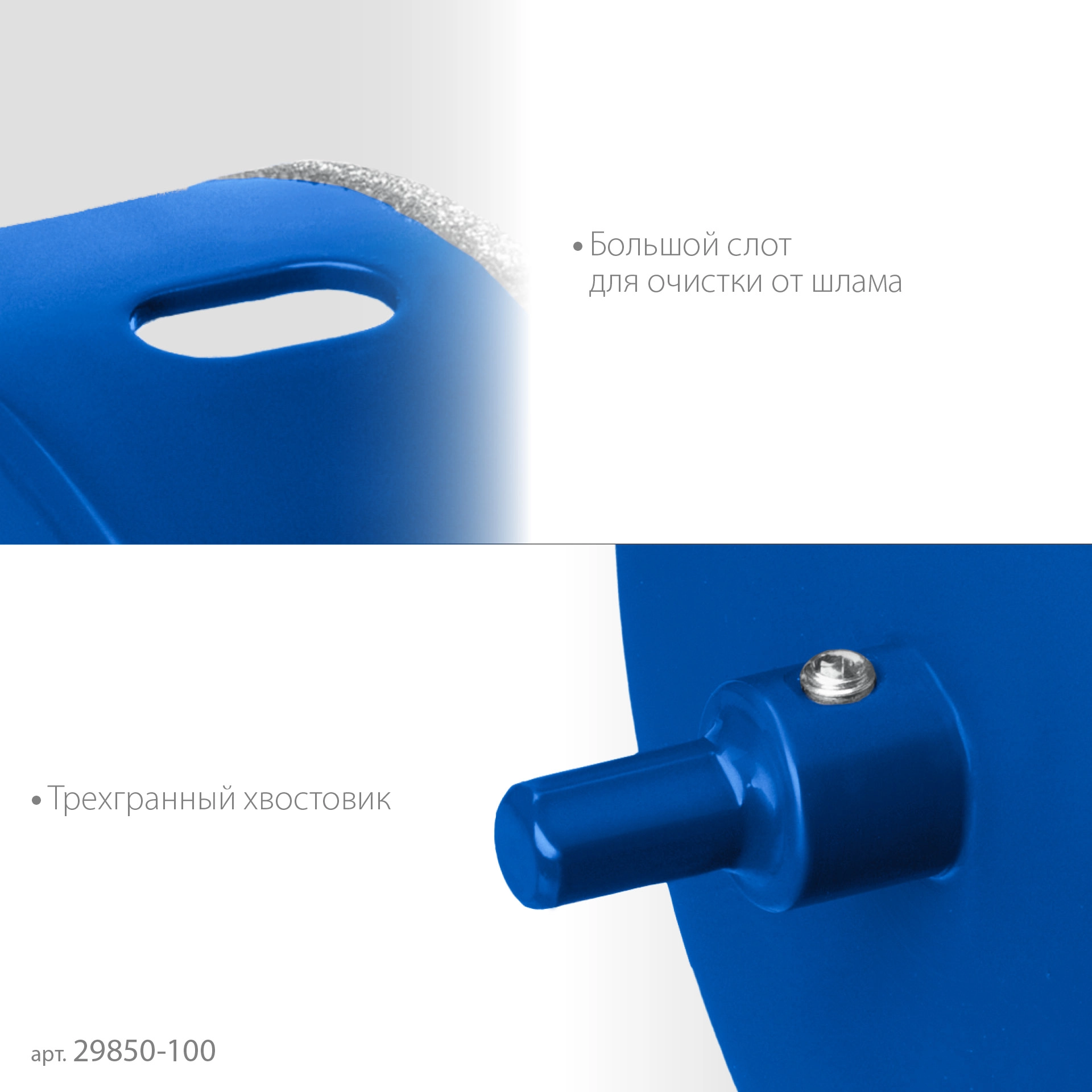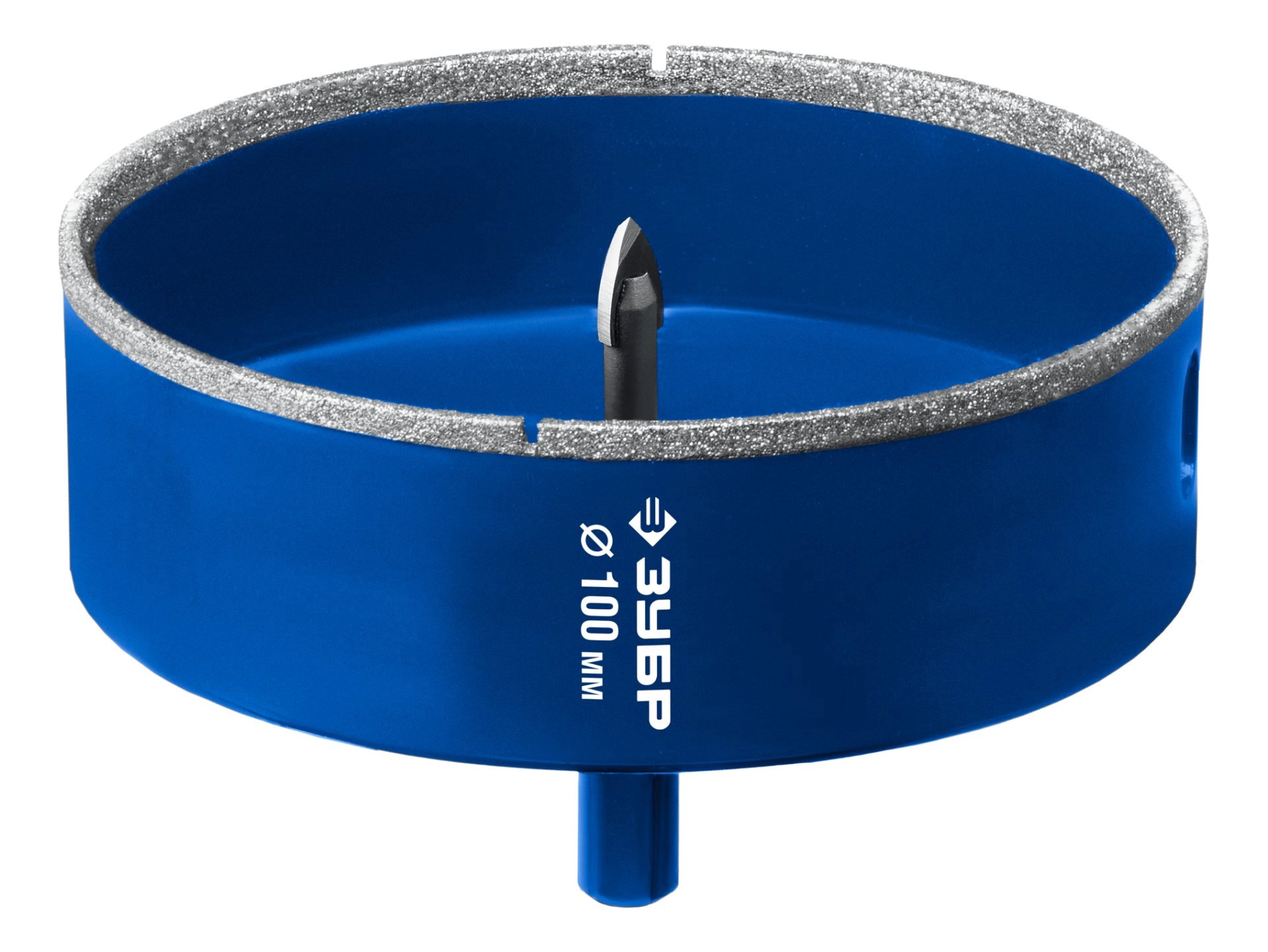 ПроизводителиКоронка алмазная АГК d 100мм центр. сверло, трехгр. хвост, Р60, Профессионал (29850-100) ЗУБР