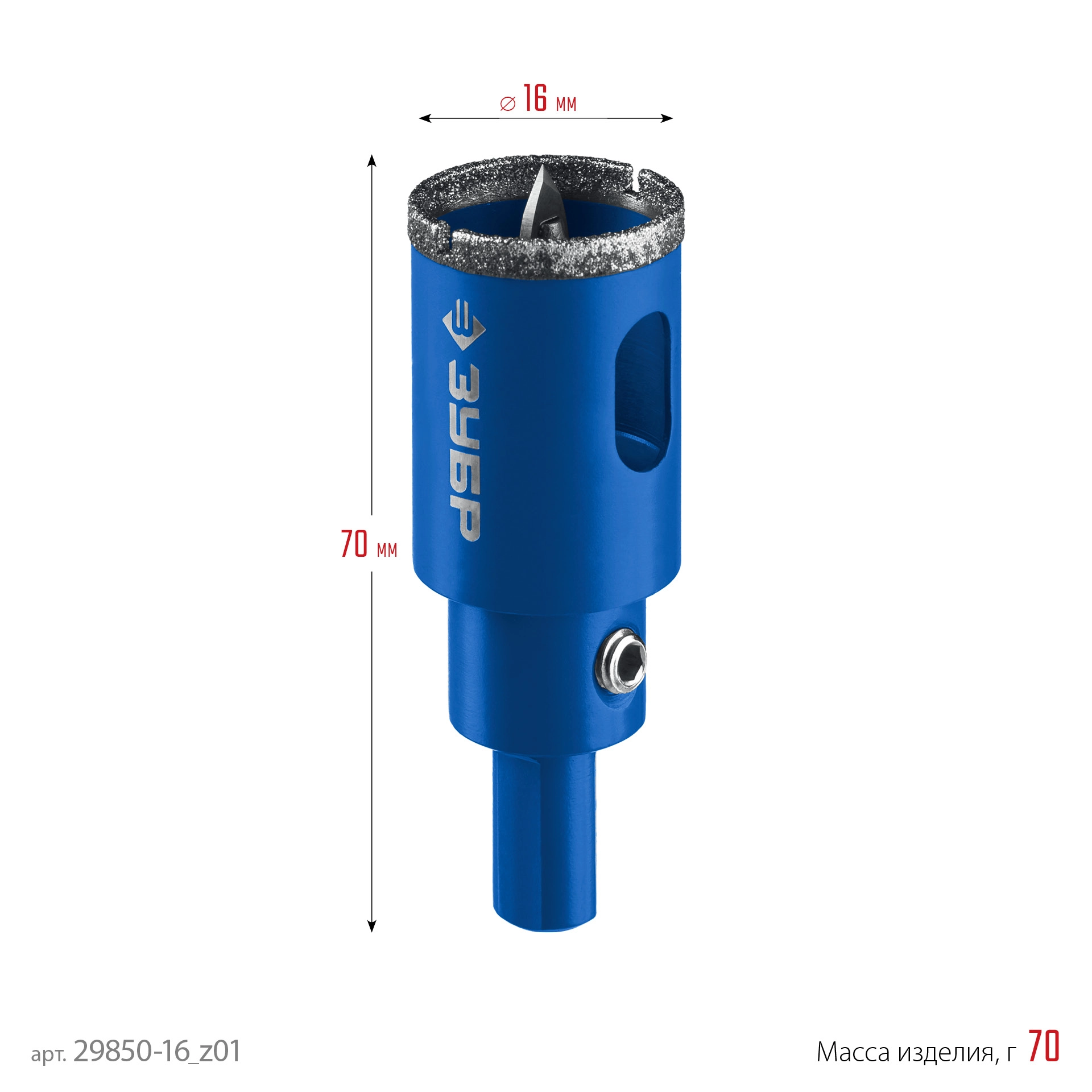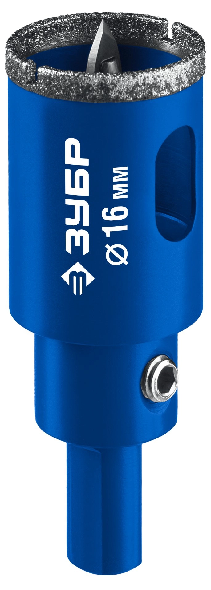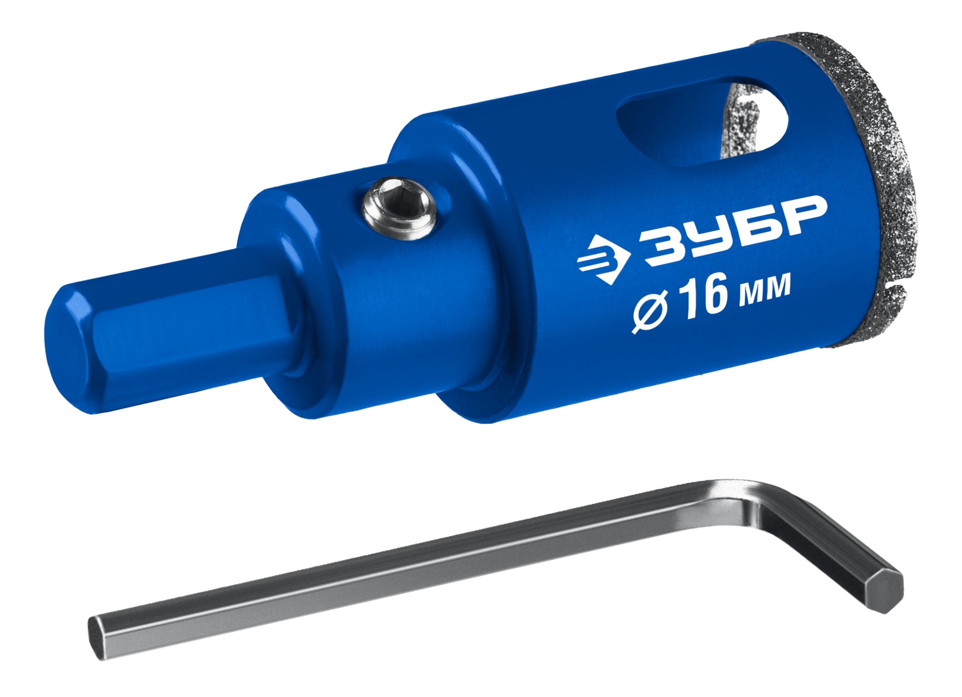 ПроизводителиКоронка алмазная АГК d 16мм центр. сверло, трехгр. хвост, Р60, Профессионал (29850-16_z01) ЗУБР