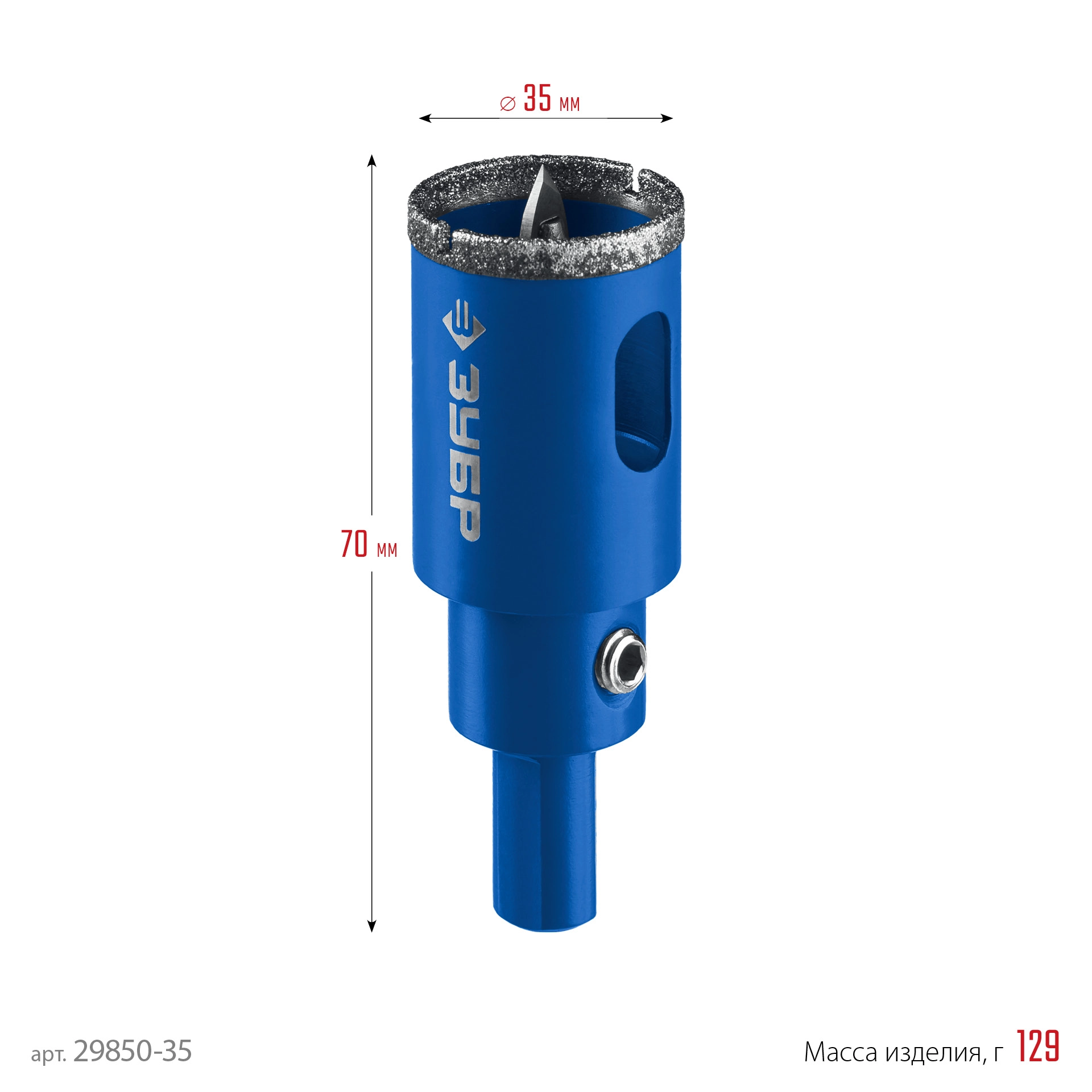 ПроизводителиКоронка алмазная 35мм, с центр.сверлом, зерно Р60, керам., кафель, стекло "ПРОФИ" (29850-35) ЗУБР