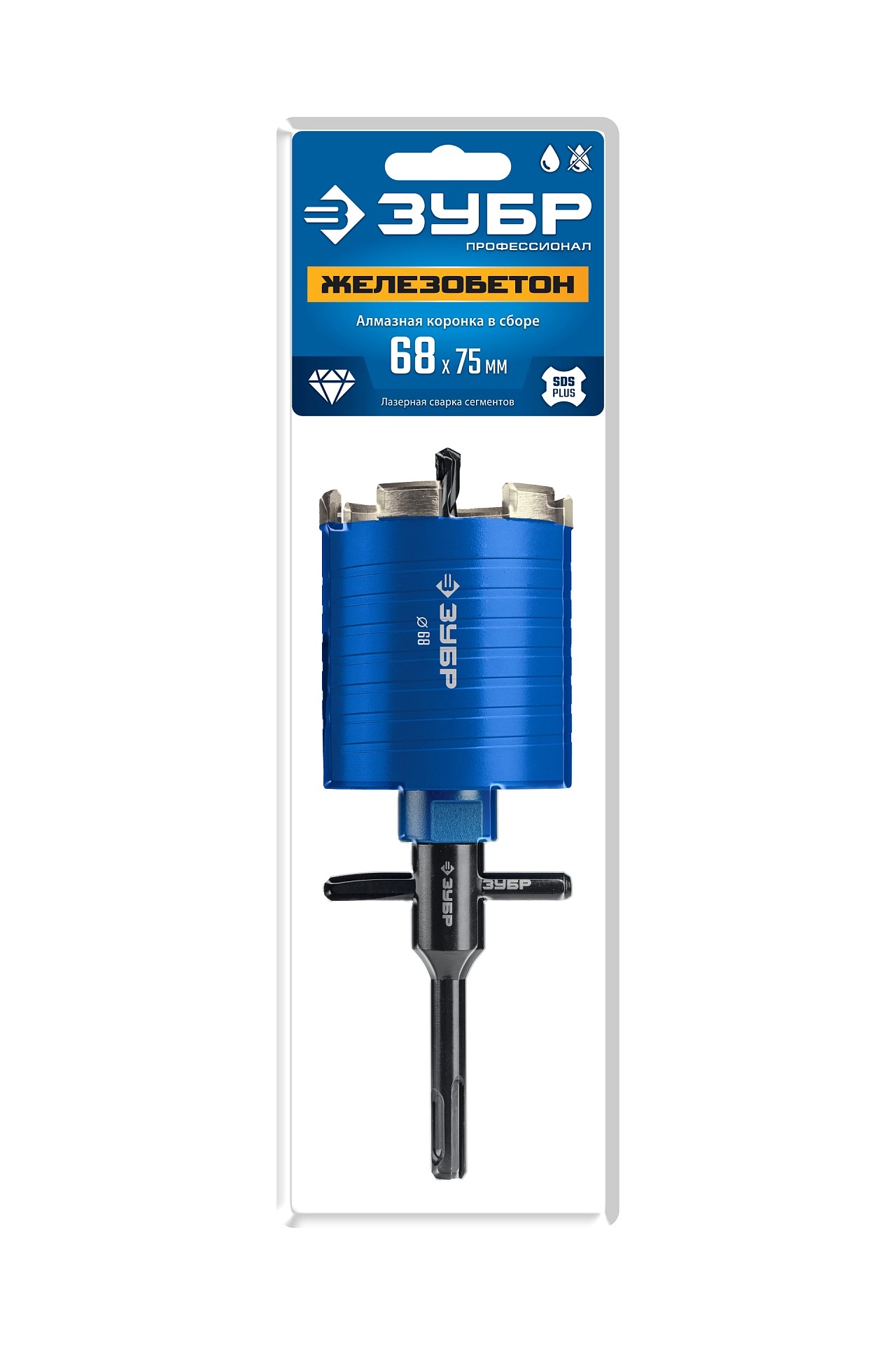 ПроизводителиКоронка алмазная сегментная (подрозетник) 68мм, М16, в сборе (29875-68) ЗУБР