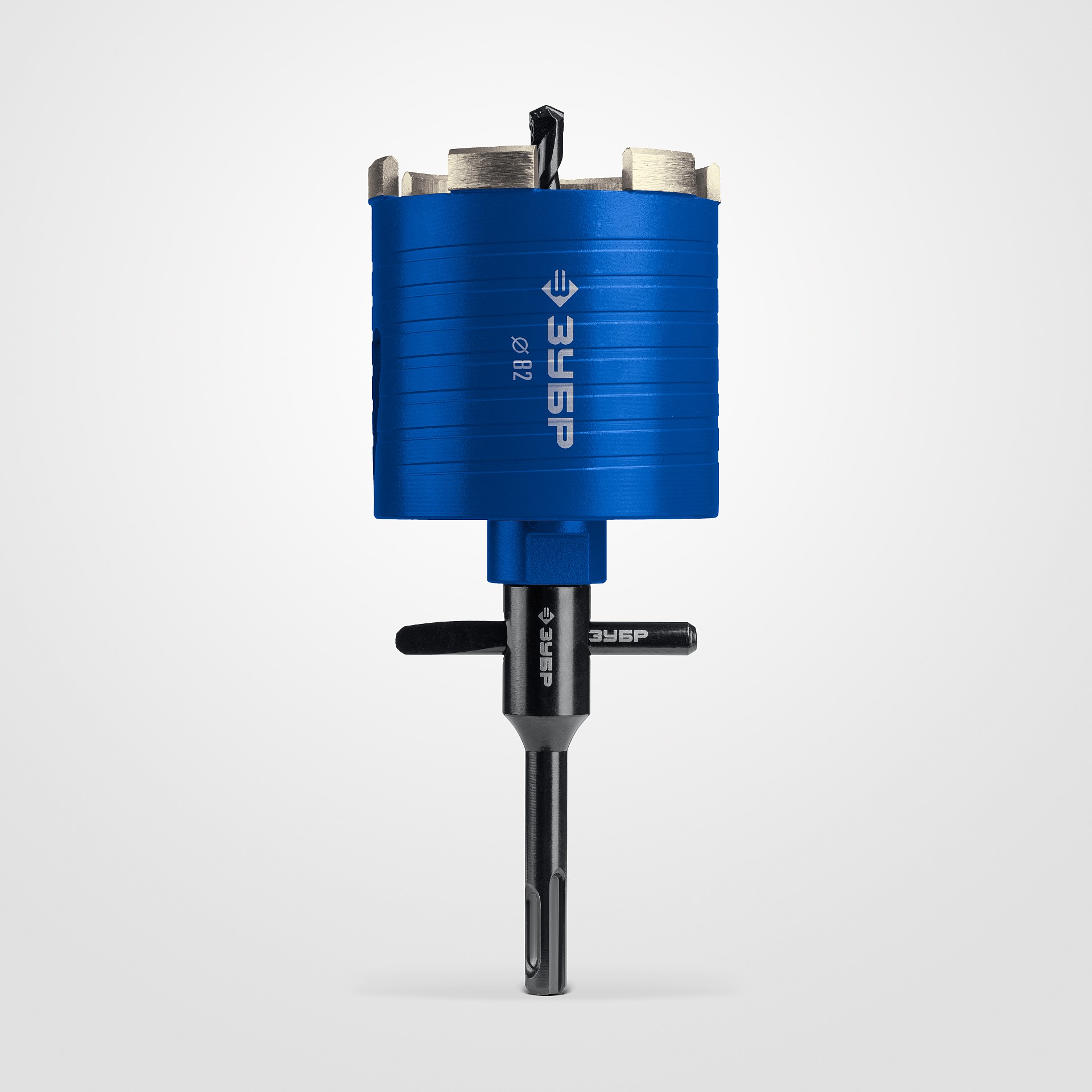 ПроизводителиКоронка алмазная сегментная (подрозетник) 82мм, М16, в сборе (29875-82) ЗУБР