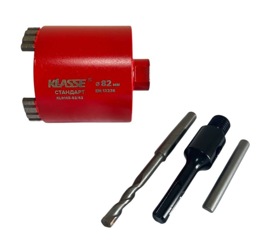ПроизводителиКоронка алмазная сегментная (подрозетник) 82мм, в сборе "Стандарт" (KL0145-82/62) KLASSE