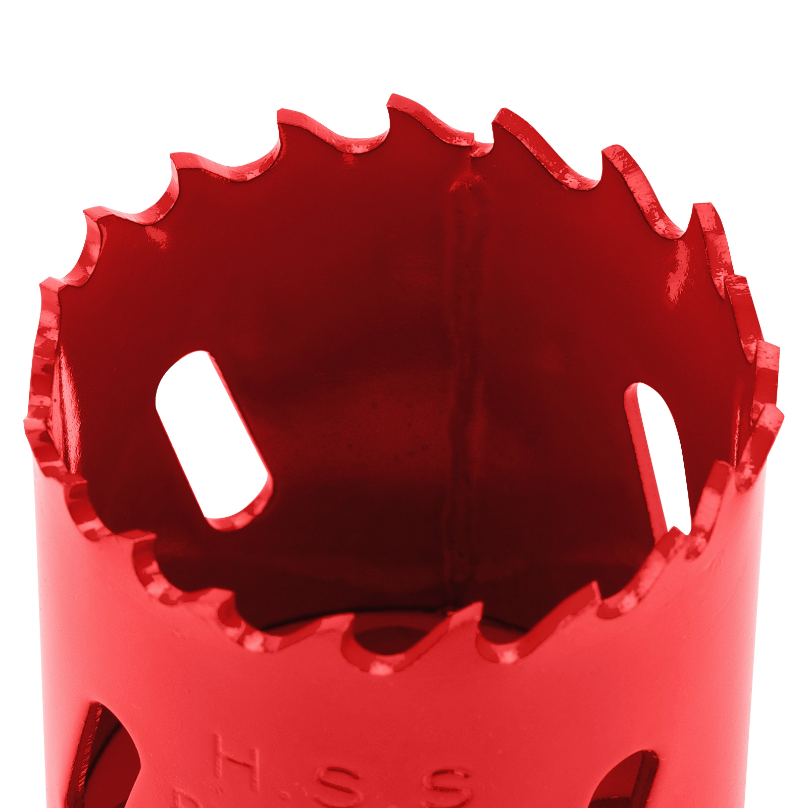 Высокий ресурс и прочность коронки обеспечивается за счет качественных материалов изготовления: корпус выполнен из углеродистой стали, а рабочая часть - из быстрорежущей.