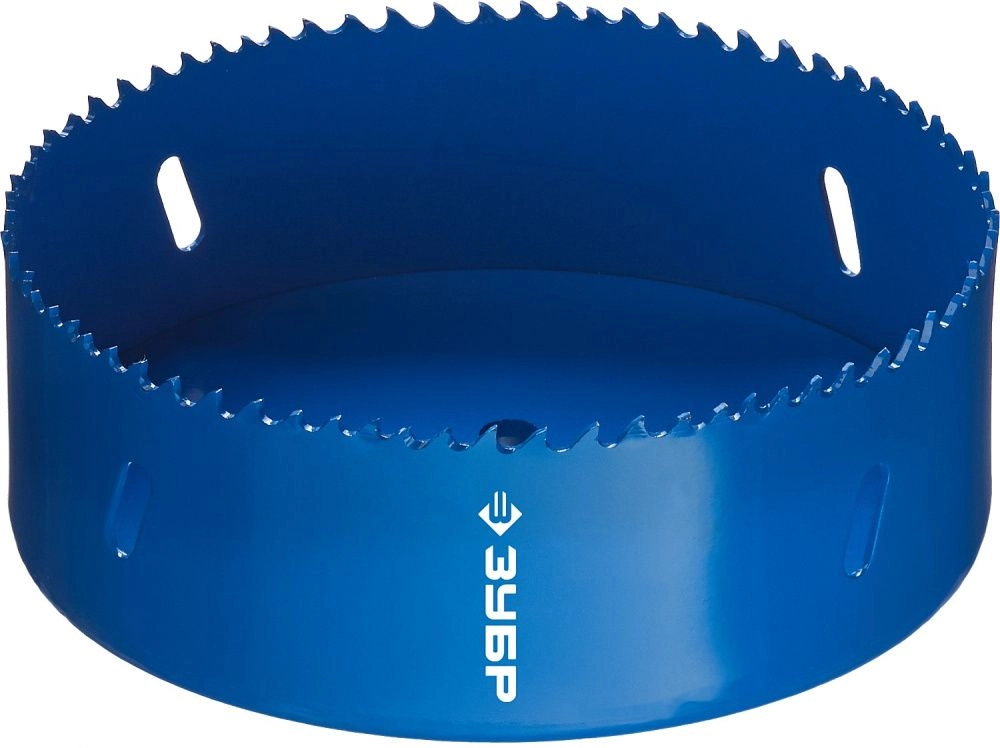Универсальные би-металлические кольцевые пилы ЗУБР имеют разведённые закалённые зубья повышенной твёрдости с прогрессивным расположением. Благодаря чему гарантируется аккуратное чистовое сверление без трещин и сколов. Компенсационные прорези в корпусе обеспечивают снижение шума при работе, а также предотвращают деформацию пилы вследствие перегрева изделия.