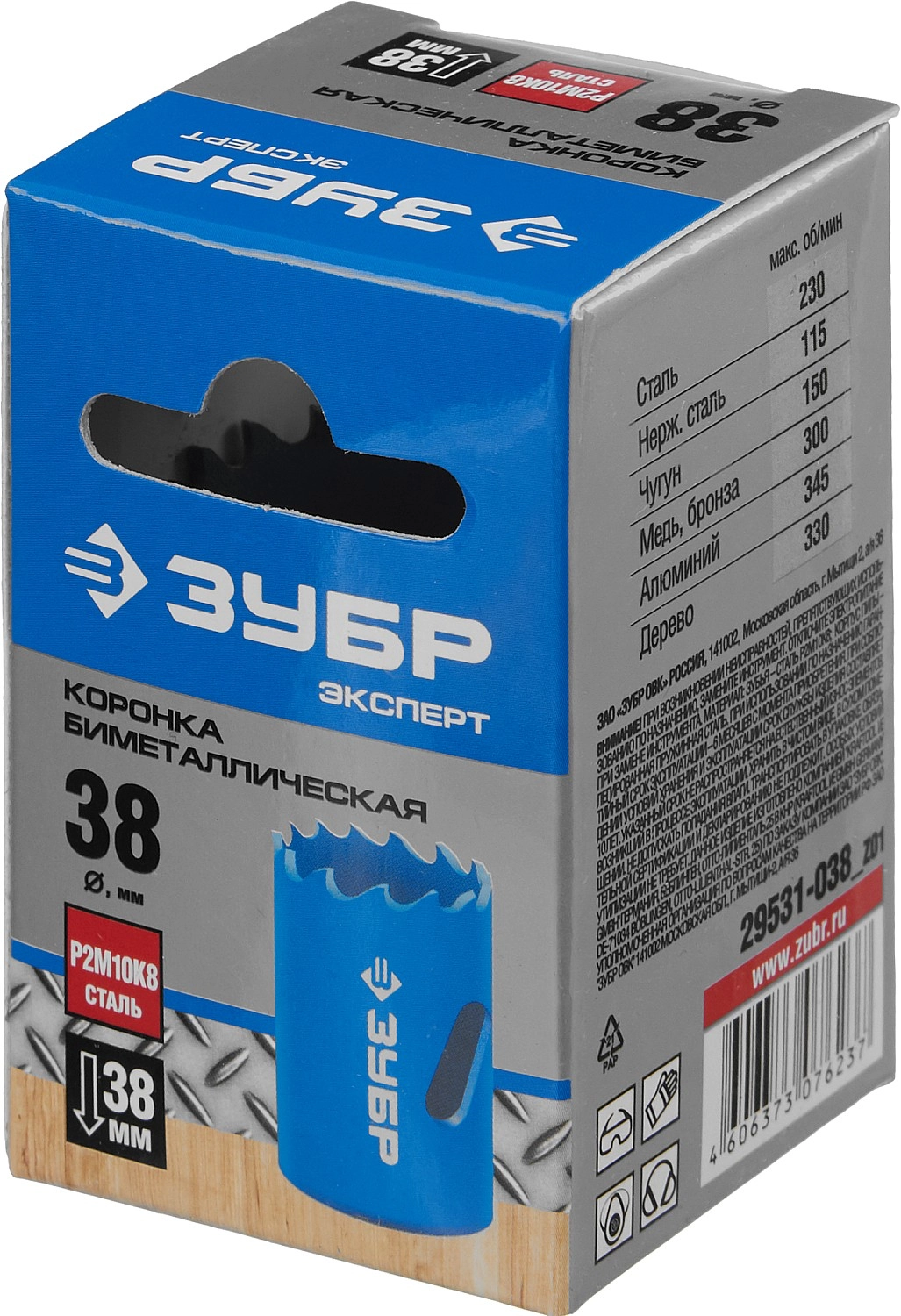 ПроизводителиКоронка биметаллическая 38мм, HSS-Co "ЭКСПЕРТ" (29531-038_z01) ЗУБР
