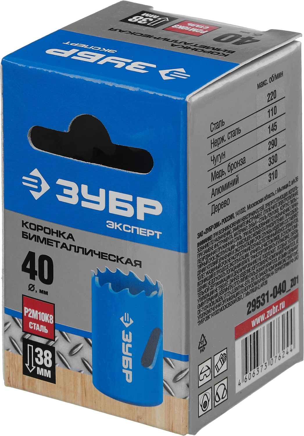 ПроизводителиКоронка биметаллическая 40мм, HSS-Co "ЭКСПЕРТ" (29531-040_z01) ЗУБР