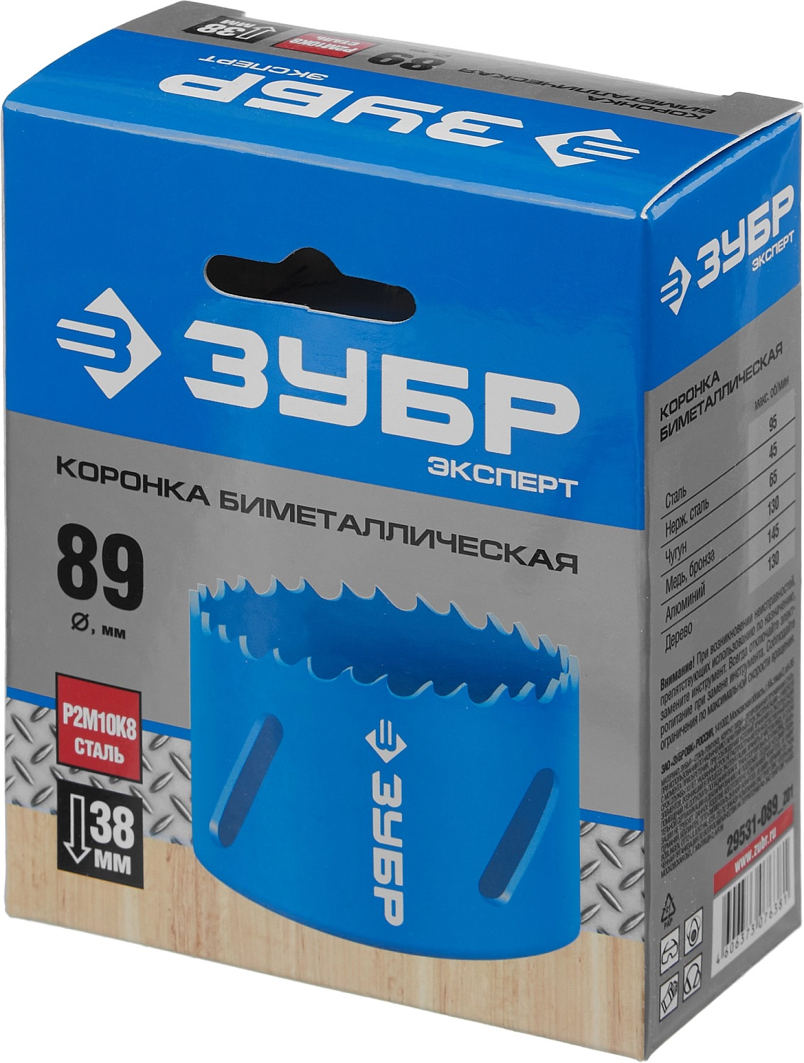 ПроизводителиКоронка биметаллическая 89мм, HSS-Co "ЭКСПЕРТ" (29531-089_z01) ЗУБР