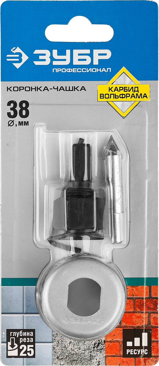 ПроизводителиКоронка-чашка с карбид-вольф. покр., 38мм, высота 25мм, в сборе "ПРОФЕССИОНАЛ" (33360-038_z01) ЗУБР