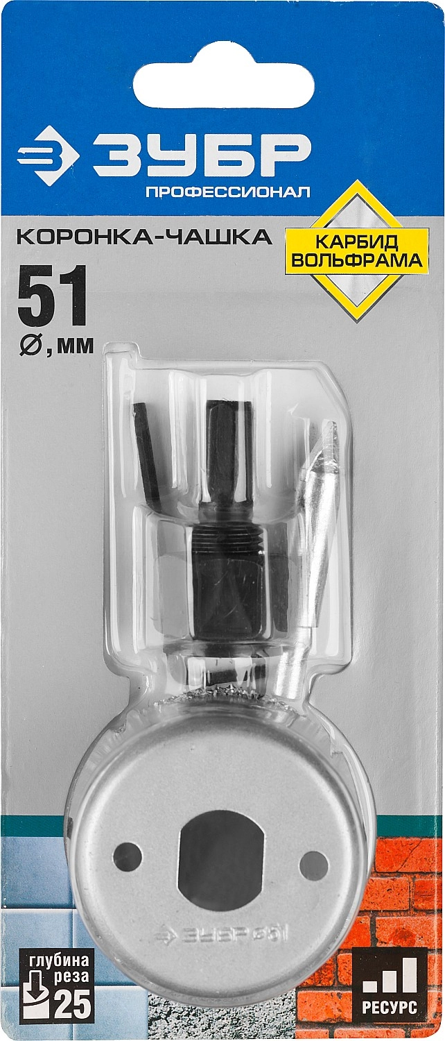 ПроизводителиКоронка-чашка с карбид-вольф. покр., 51мм, высота 25мм, в сборе "ПРОФЕССИОНАЛ" (33360-051_z01) ЗУБР