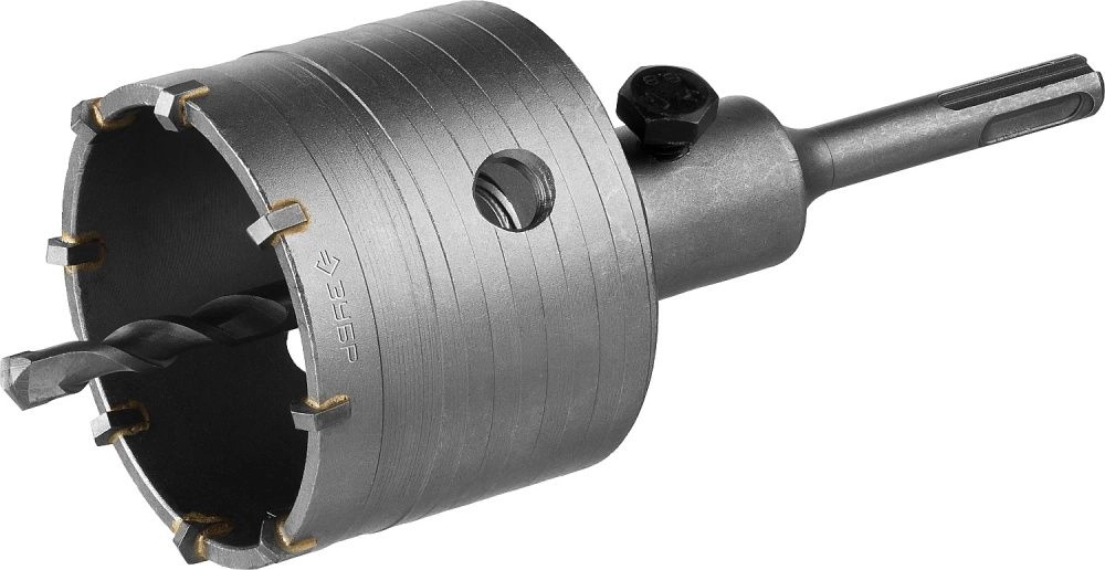 ПроизводителиКоронка бурильная в сборе 73мм, SDS-plus "МАСТЕР" (29211-73) ЗУБР