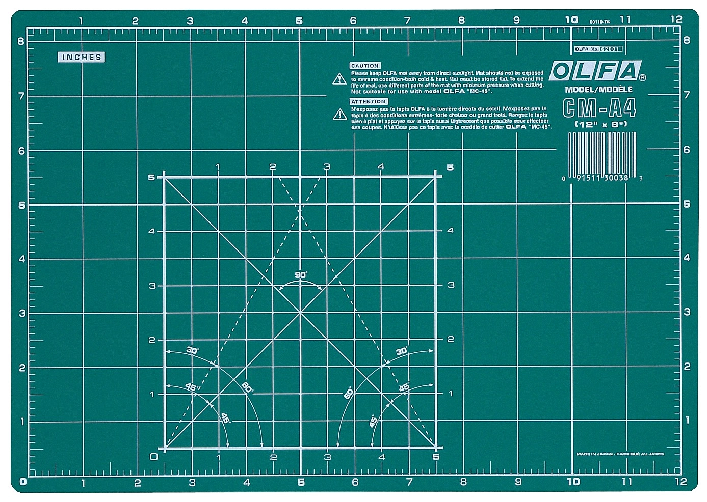 • С обеих сторон коврика нанесена разметочная сетка - метрическая и дюймовые шкалы.