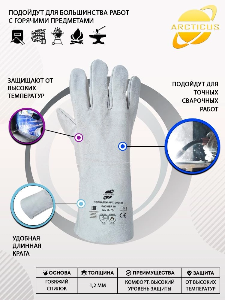 ПроизводителиКраги сварщика спилковые пятипалые серые р. 11 Arcticus