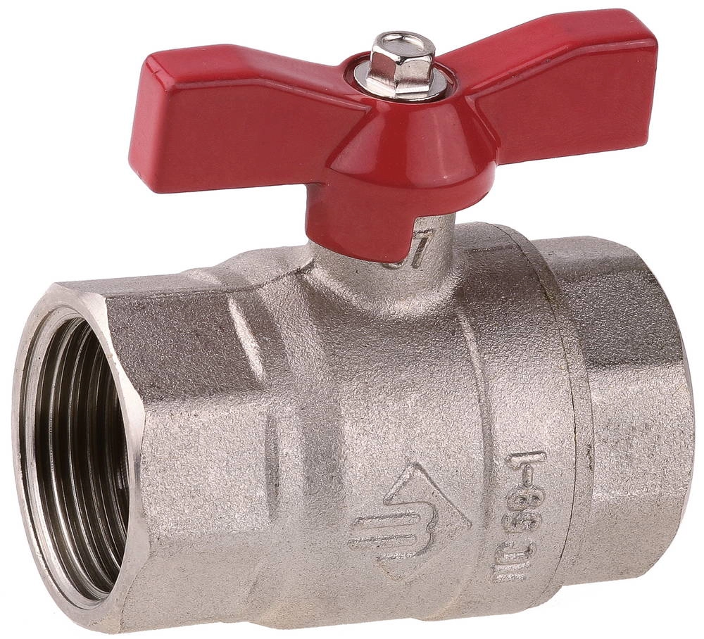 ПроизводителиКран шаровой 1" полнопроходной "мама-мама", бабочка, никелированная латунь (51353-N-1) ЗУБР