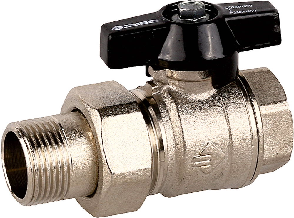 ПроизводителиКран шаровой ЗУБР полнопроходной с накидной гайкой "мама-папа", бабочка, никелированная латунь, 3/4"