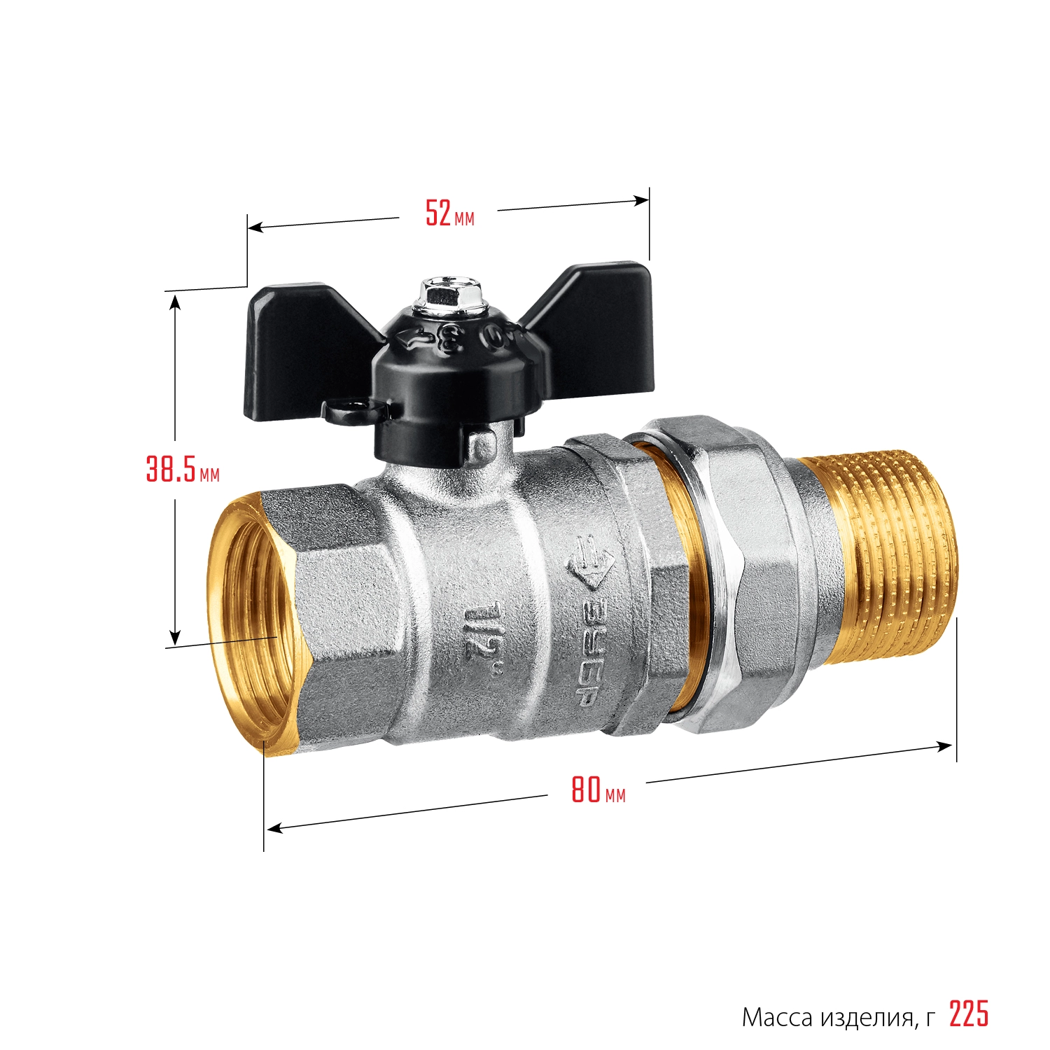 ПроизводителиКран шаровой полнопроходной с гайкой мама-папа, бабочка, никелир. латунь, 1/2 (51321-1/2) ЗУБР