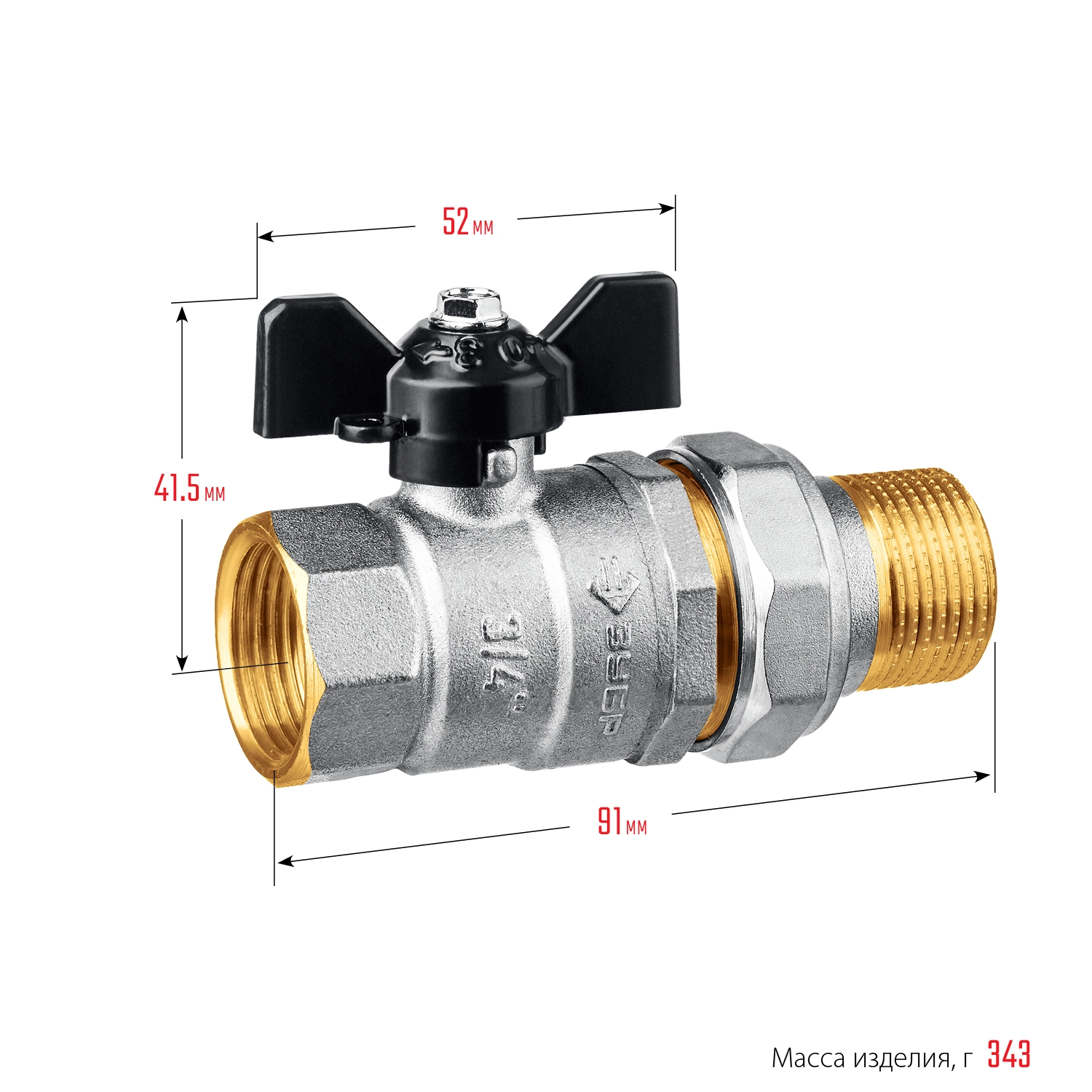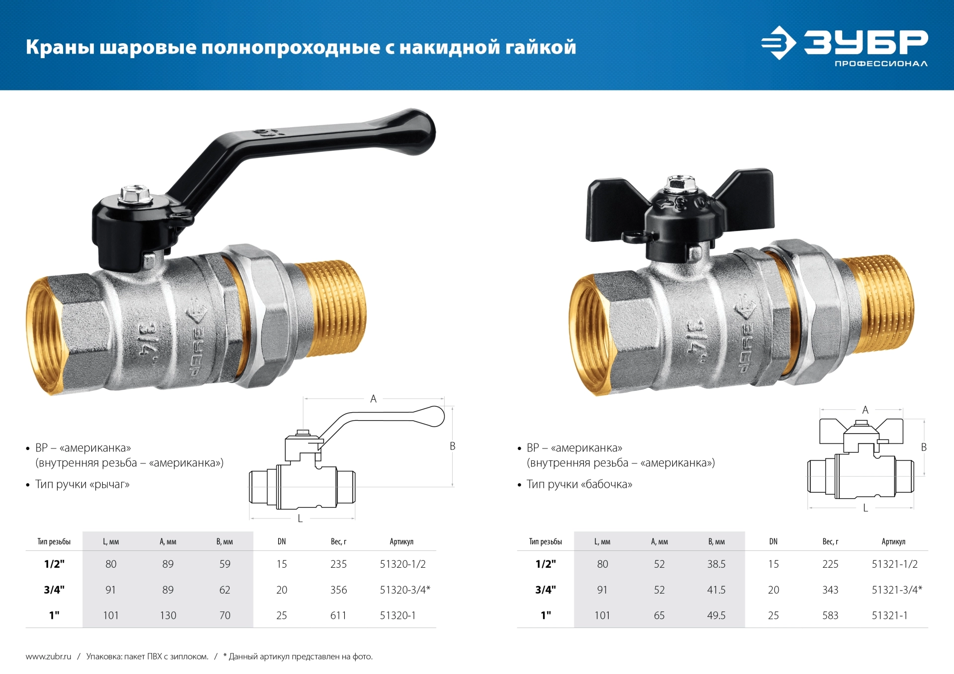 ПроизводителиКран шаровой полнопроходной с гайкой мама-папа, бабочка, никелир. латунь, 3/4 (51321-3/4) ЗУБР