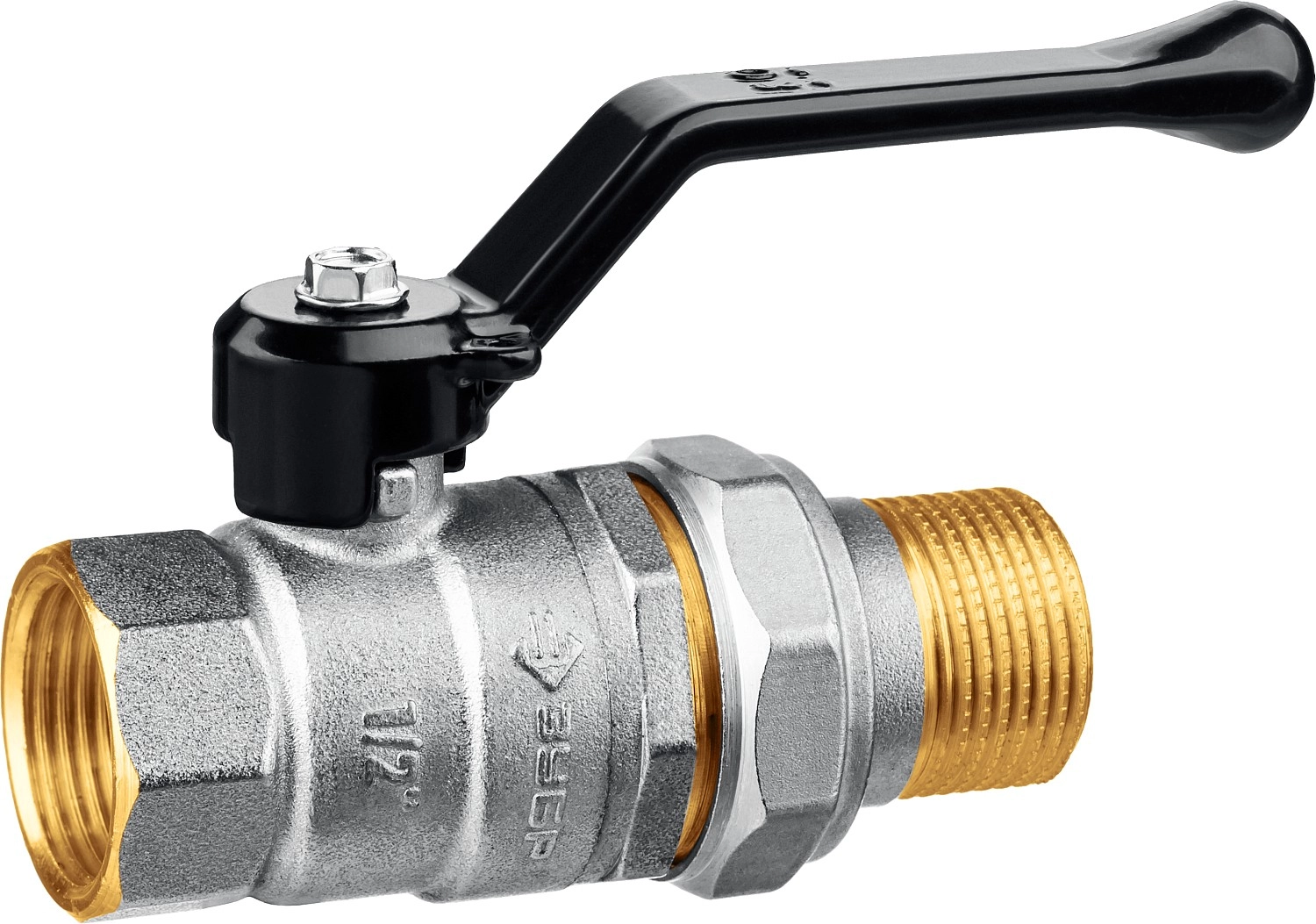 ПроизводителиКран шаровой полнопроходной с гайкой мама-папа, ручка, никелир. латунь, 1/2 (51320-1/2) ЗУБР