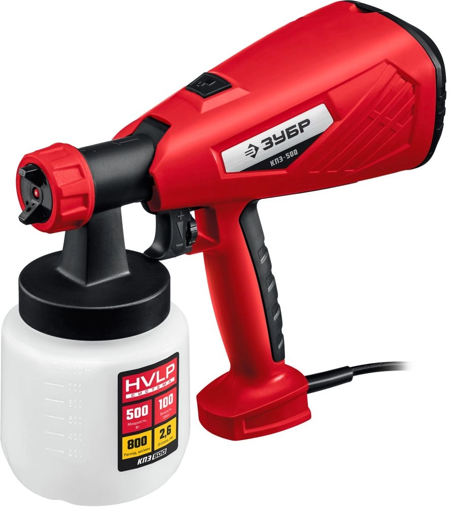 ПроизводителиКраскопульт электрический HVLP, 500Вт, 0,8л, сопло 2,6мм (КПЭ-500) ЗУБР