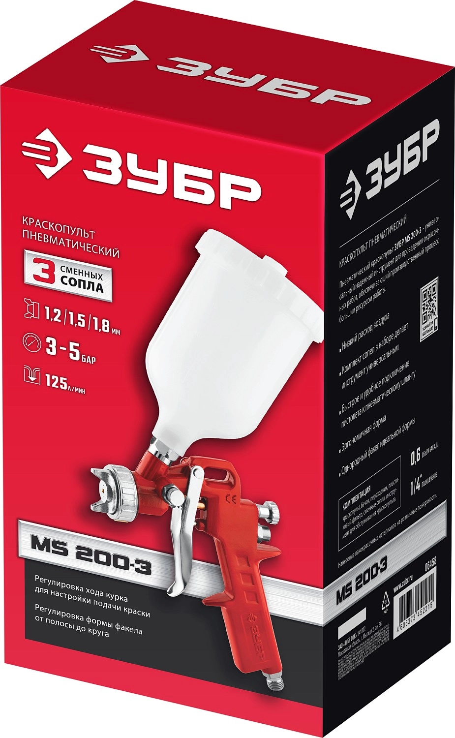 Краскопульт ЗУБР ″МС 200+″ пневматический - универсальный надежный инструмент для проведения окрасочных работ, обеспечивающий производственный процесс большим ресурсом работы.