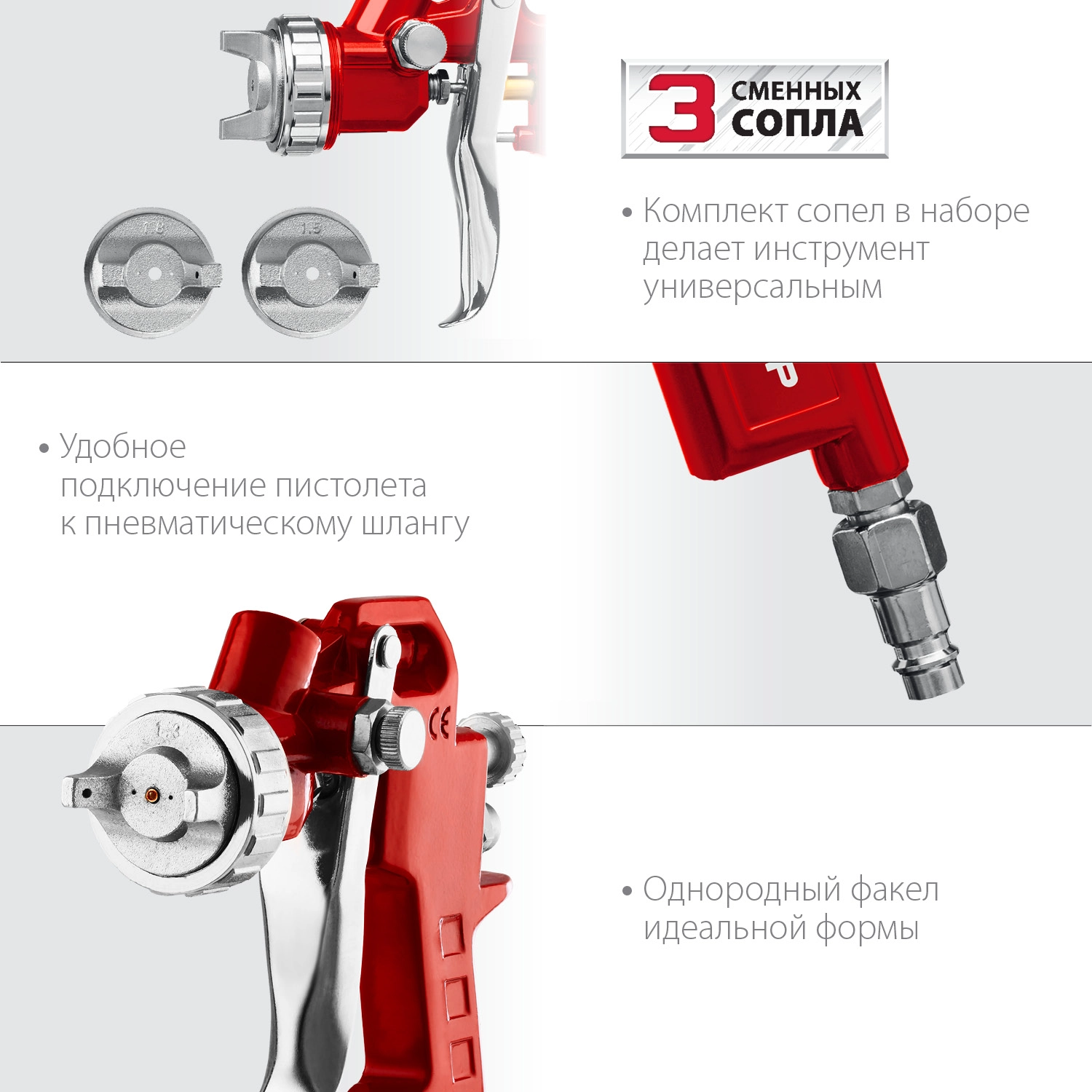 Комплект сопел в наборе делает инструмент универсальным