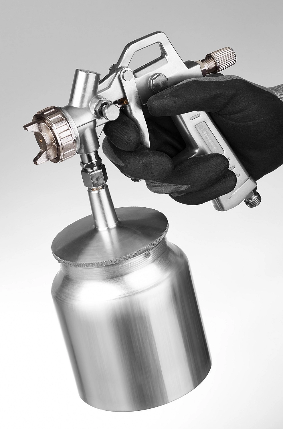 -Нижнее расположение бачка позволяет прервать работу и поставить пистолет на поверхность.