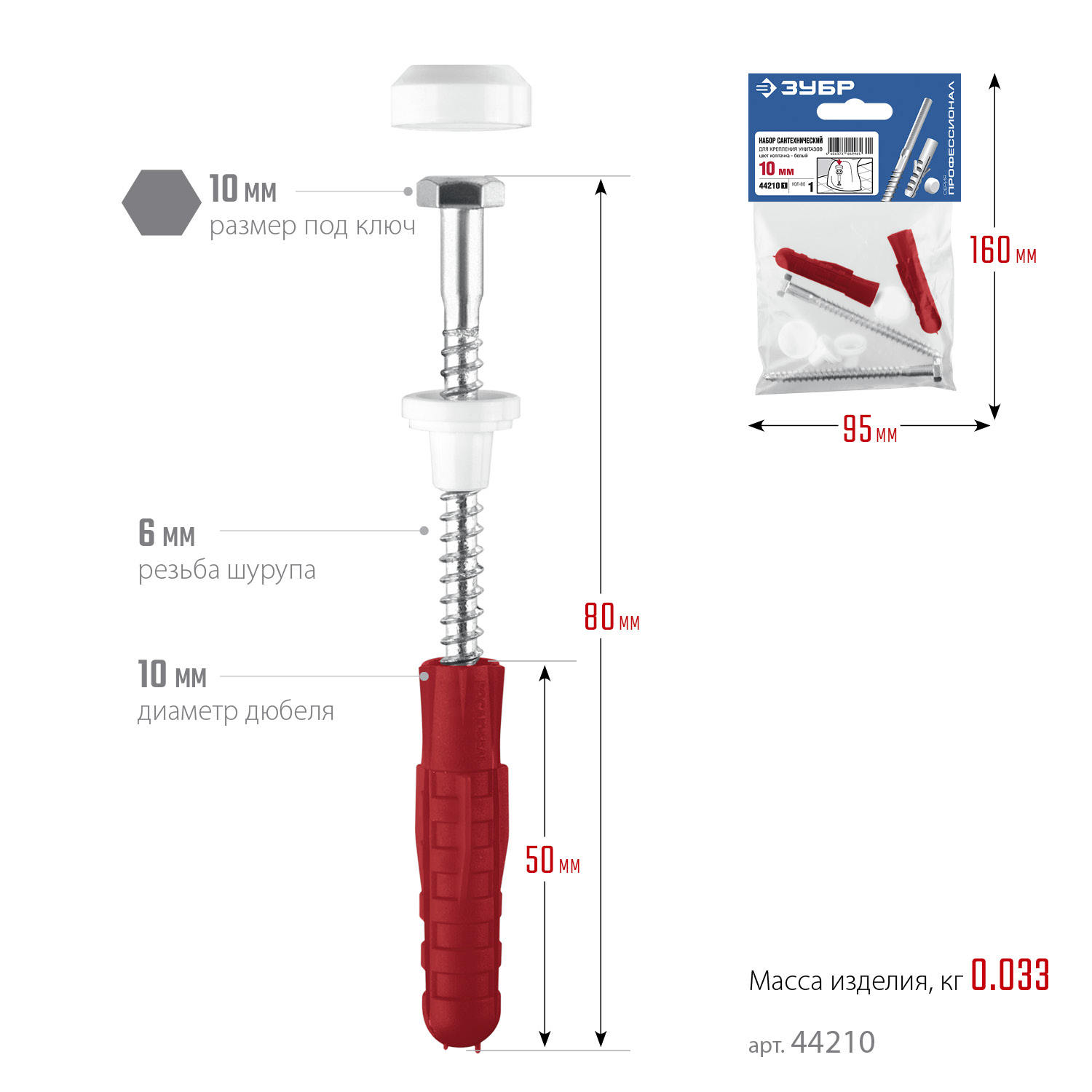 ПроизводителиНабор для крепления унитазов, 10 мм, цвет белый (44210_z01) ЗУБР