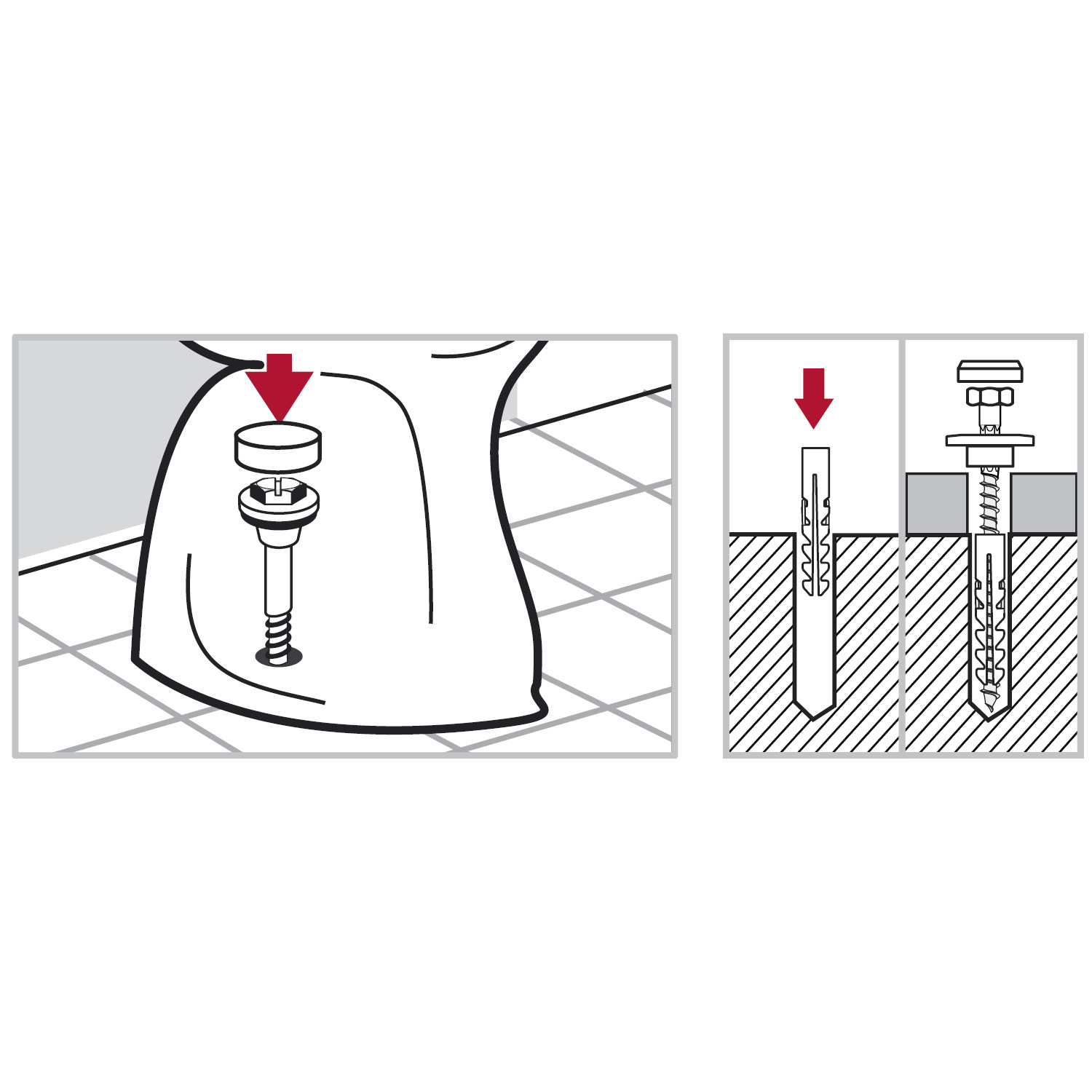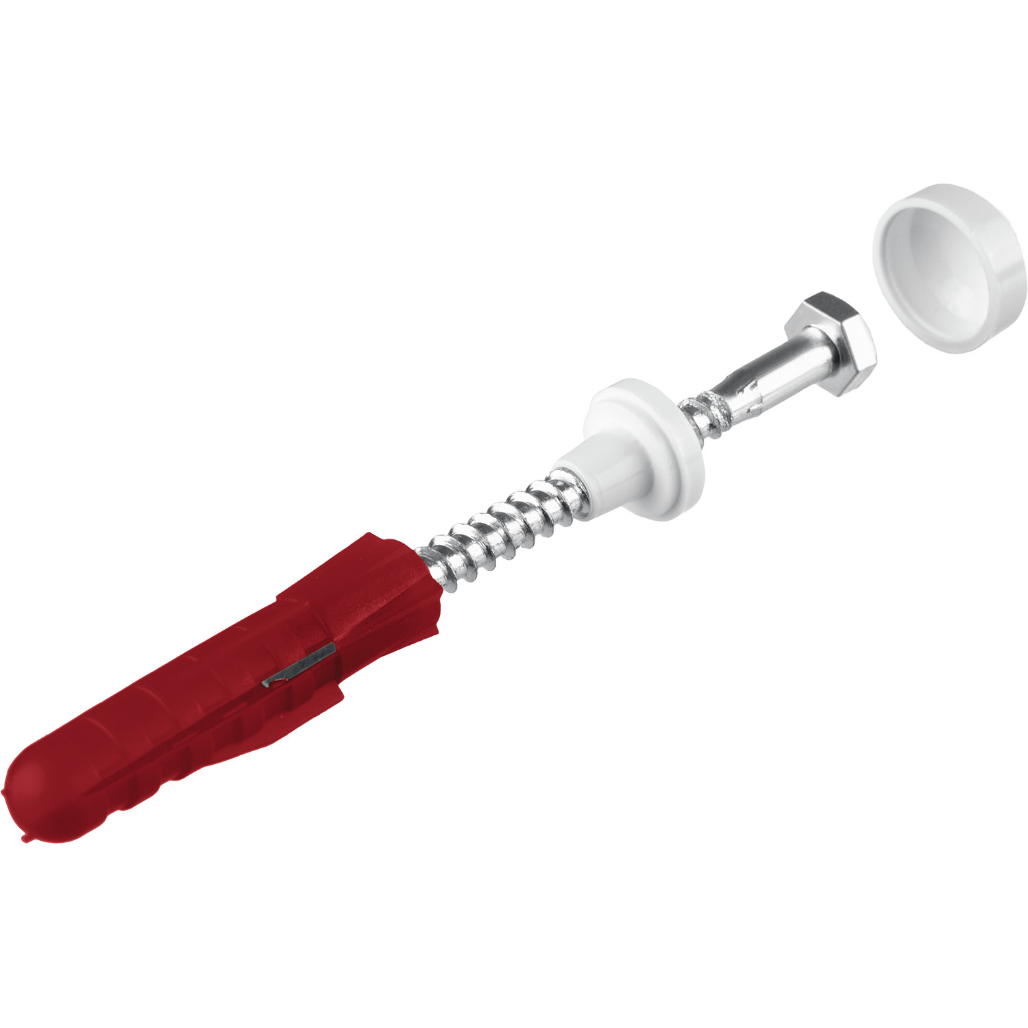 Набор включает в себя полный комплект крепежных изделий, необходимых для установки унитаза: дюбели, шурупы, декоративные колпачки и втулки пластмассовые; Декоративные колпачки белого цвета фиксируются на установленных шурупах и способствуют улучшению общего эстетического вида.Производитель: Крафтул И/Е Гмбх, Альтер Поствег Штр., Лоенинген, Германия
