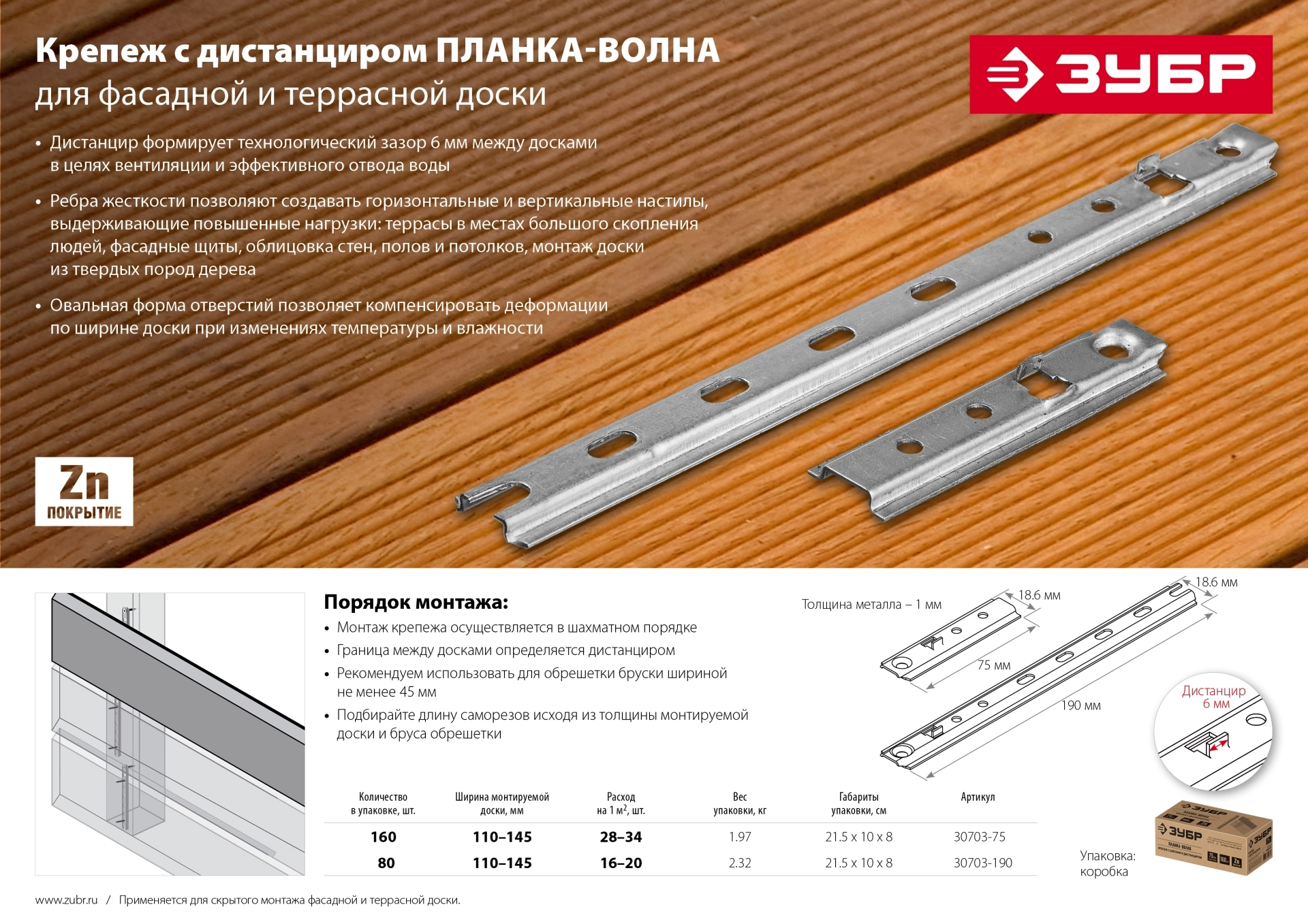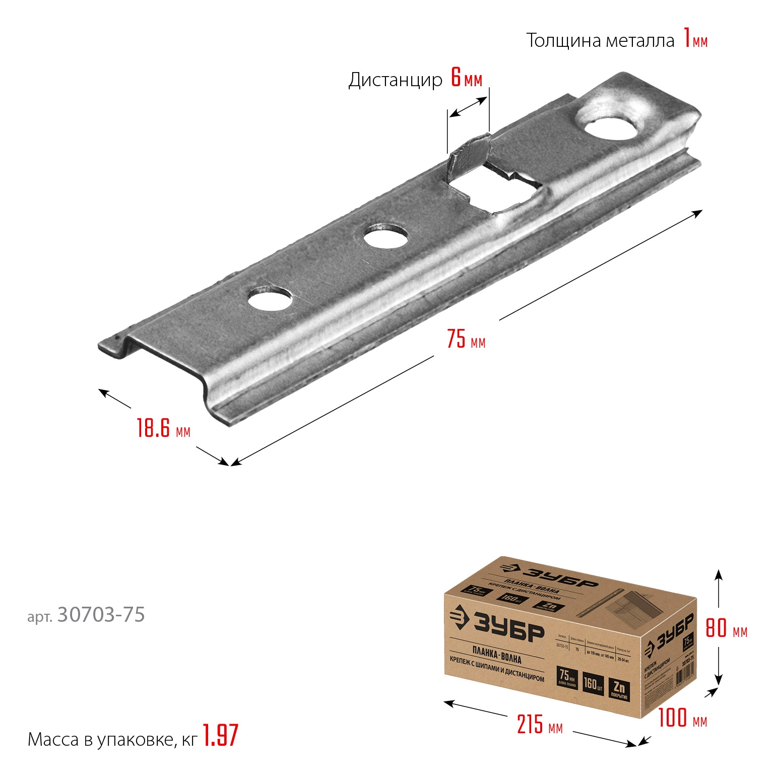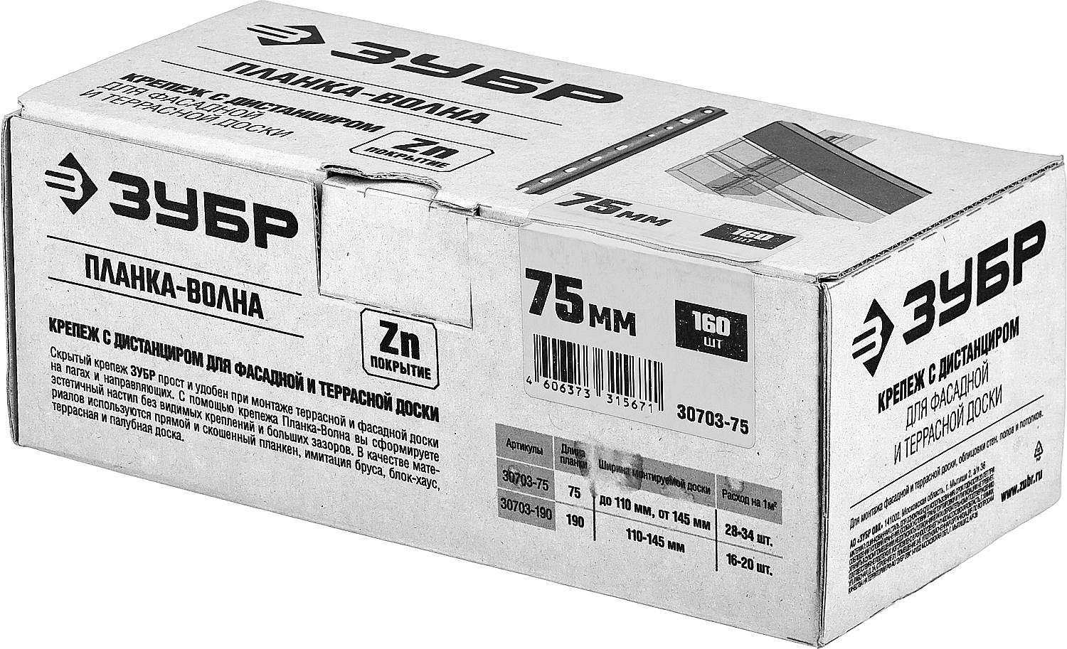 ПроизводителиКрепеж с дистанциром для фасадной и террасной доски Планка-Волна 75 мм 160 шт (30703-75) ЗУБР