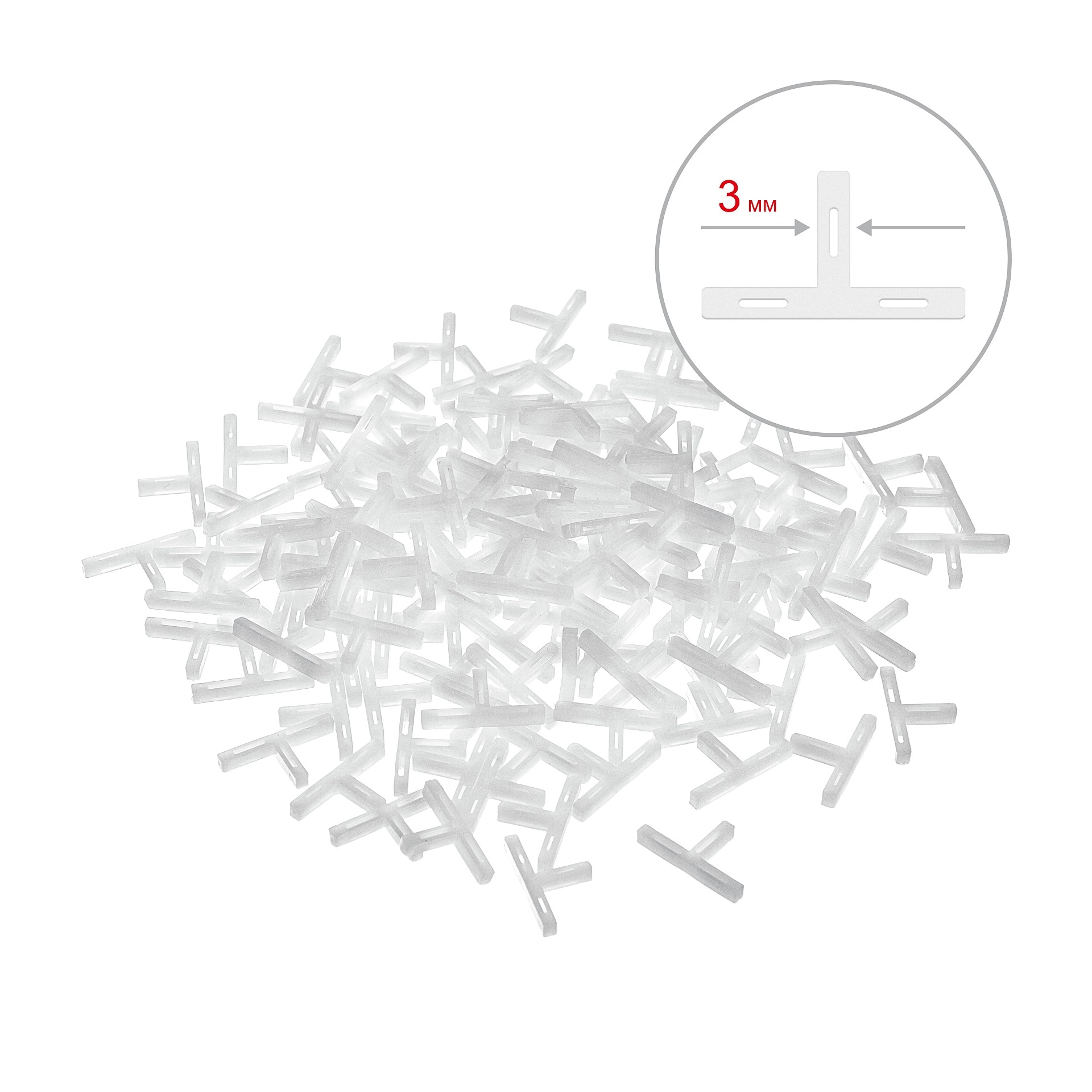 ПроизводителиКрестики Т-образные для кафеля, 3мм, 150шт (33813-3) ЗУБР