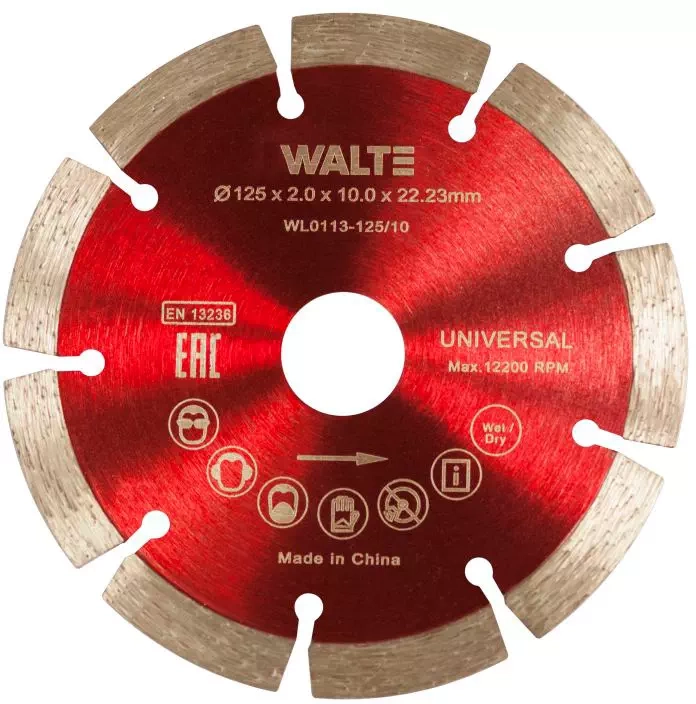 ПроизводителиКруг алмазный сегм. 150х2.2х10x22.23 мм Универсал (WL0116-150/10) WALTER