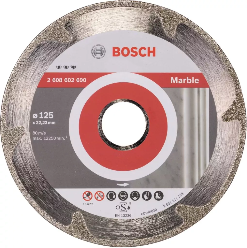 ПроизводителиКруг алмазный сплошной 125х2.2х3х22.23 мм Мрамор Best (2 608 602 690) BOSCH
