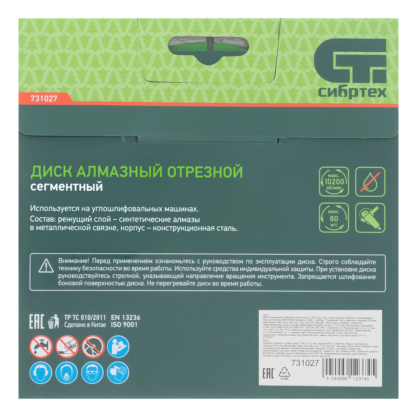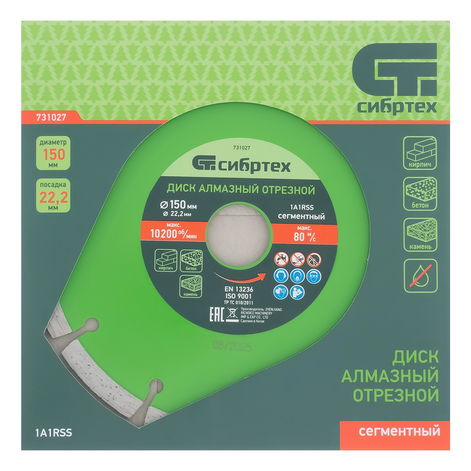 ПроизводителиКруг алмазный сегм. 150х2.0х7х22.23 мм Универсал (731027) Сибртех