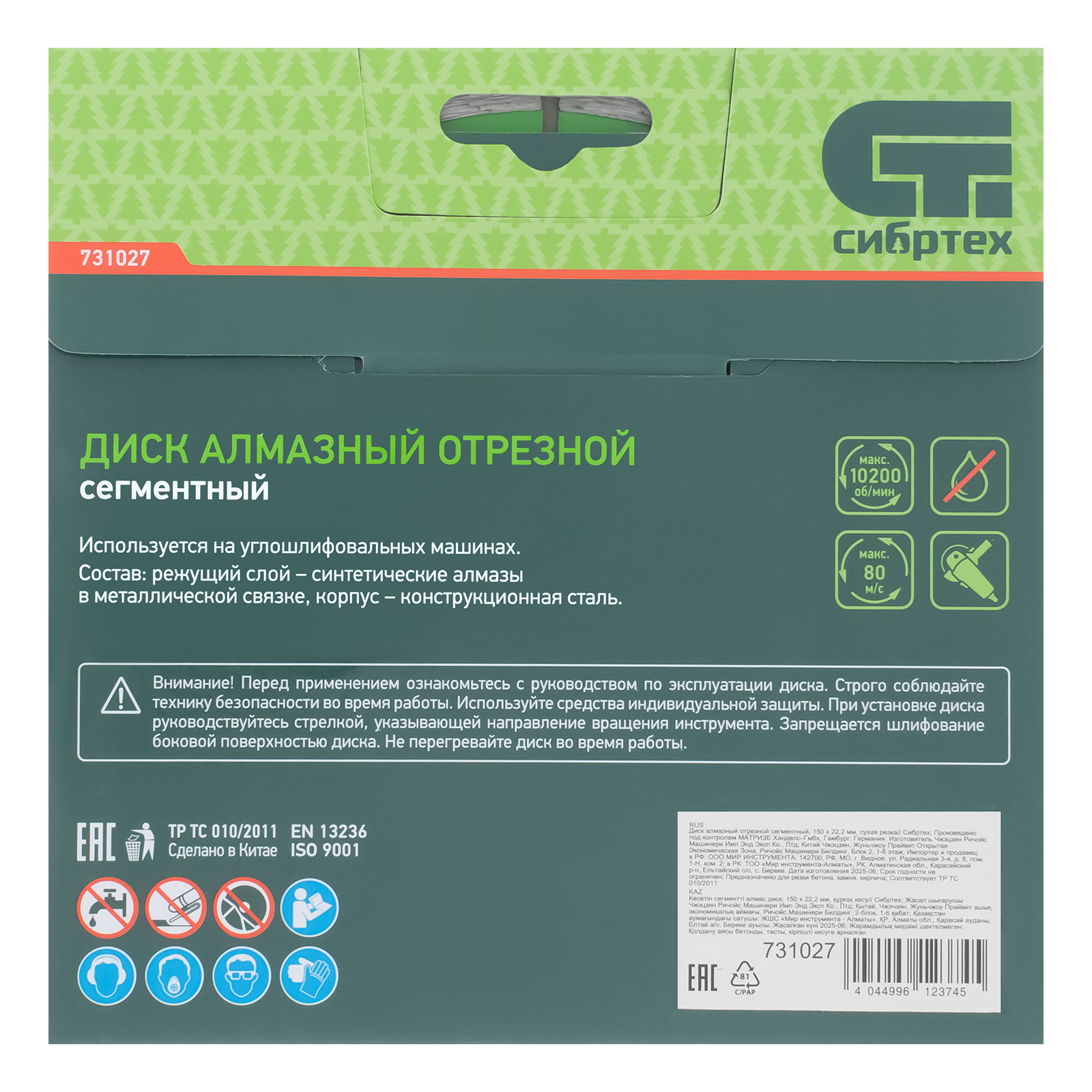 Рабочий слой нанесен методом холодного прессования, благодаря чему диск характеризуется износостойкостью.Производитель: ООО "Мир инструмента", Россия