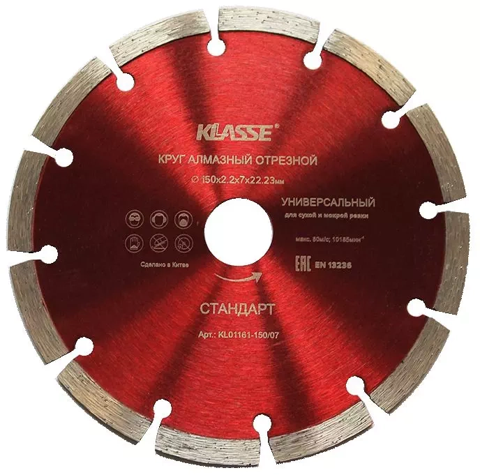 ПроизводителиКруг алмазный сегм. 150х2.2х7x22.23 мм Универсал "Стандарт" (KL01161-150/07) KLASSE