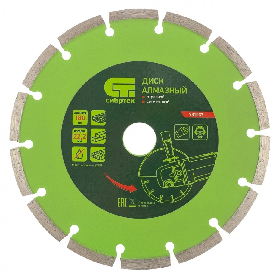 ПроизводителиКруг алмазный сегм. 180х2.0х7х22.23 мм Универсал (731037) Сибртех