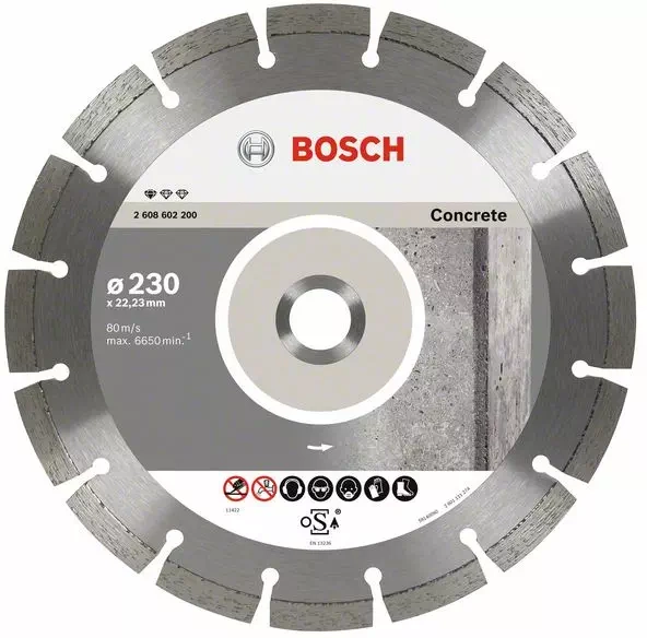 - Алмазный диск Standard for Concrete 2608602200 - это экономное решение при этом не уступающее в качестве и надежности более дорогим вариантам оснастки