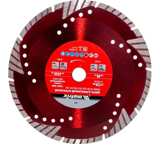ПроизводителиКруг алмазный сегм., 230x22.2 мм; 3.2х7 мм; сухая резка, с защитными секторами (73157) MATRIX