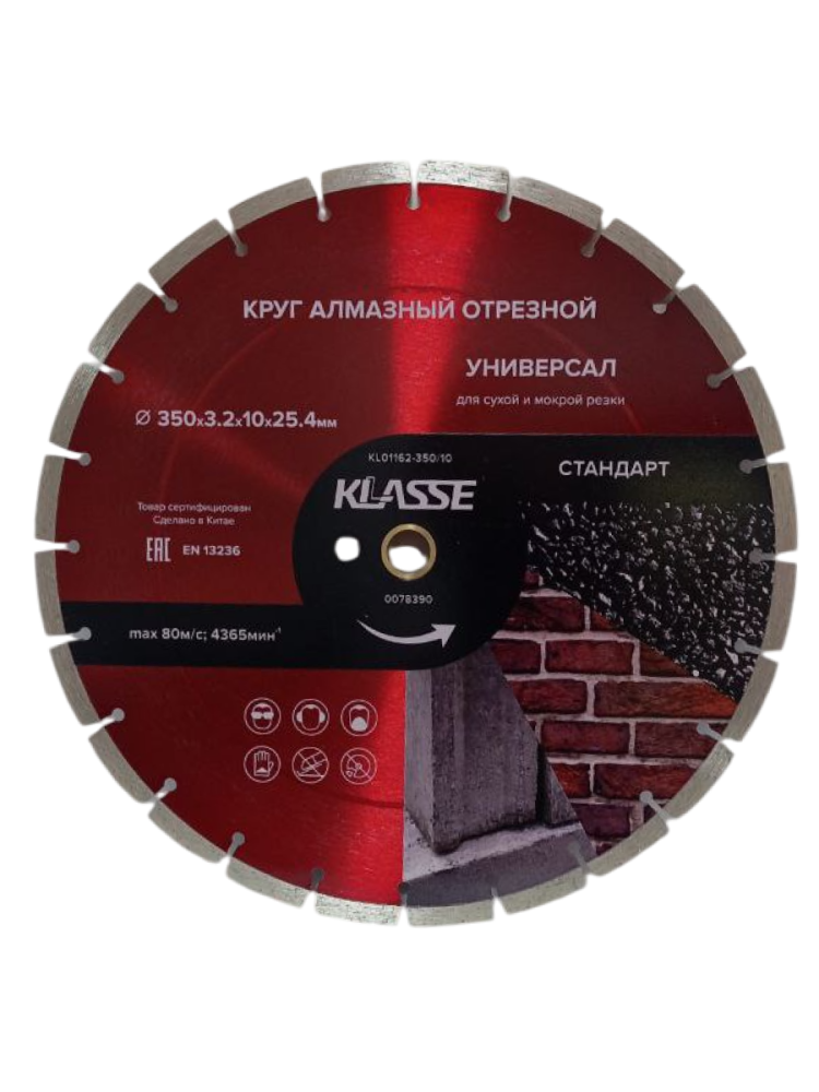 ПроизводителиКруг алмазный сегм. 350х3.2х10х25.4/20.0 мм Универсал "Стандарт" (KL01162-350/10) KLASSE