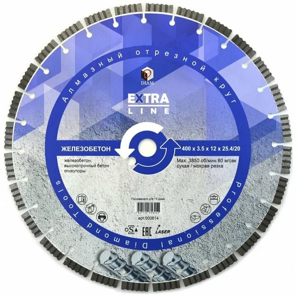 ПроизводителиКруг алмазный сегм. 400х3.5х12х25.4/20.00 мм Железобетон Extra Line DIAM