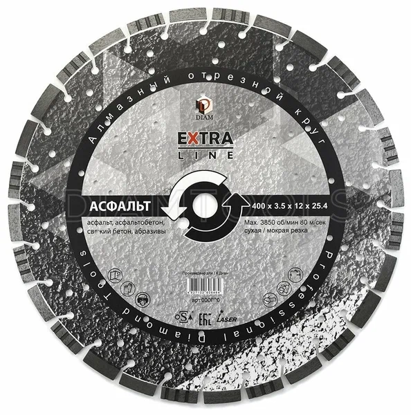 ПроизводителиКруг алмазный сегм. 400х3.5х12х25.4 мм Асфальт Extra Line DIAM