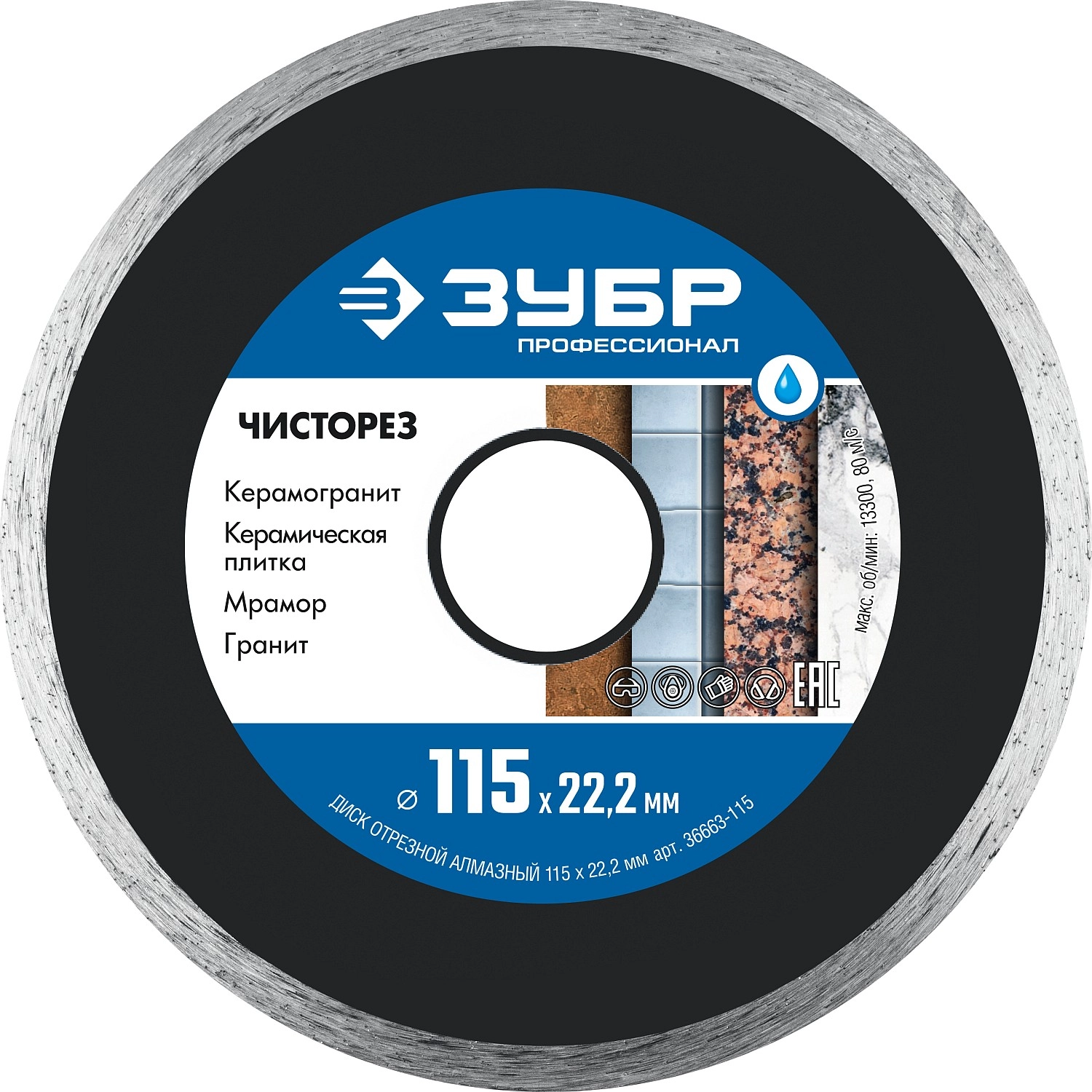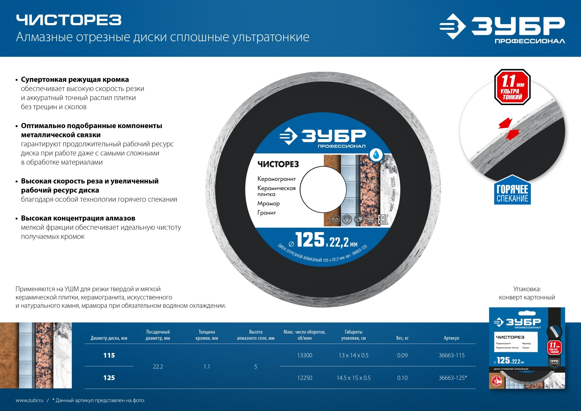 ПроизводителиКруг алмазный сплошной 115х1.1х5х22.23 мм Керамика "ЧИСТОРЕЗ" (36663-115) ЗУБР