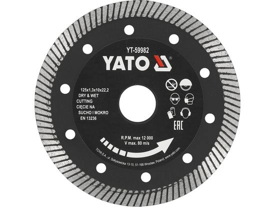 ПроизводителиКруг алмазный турбо 125х1.3x10х22.23мм Керамогранит (YT-59982) YATO